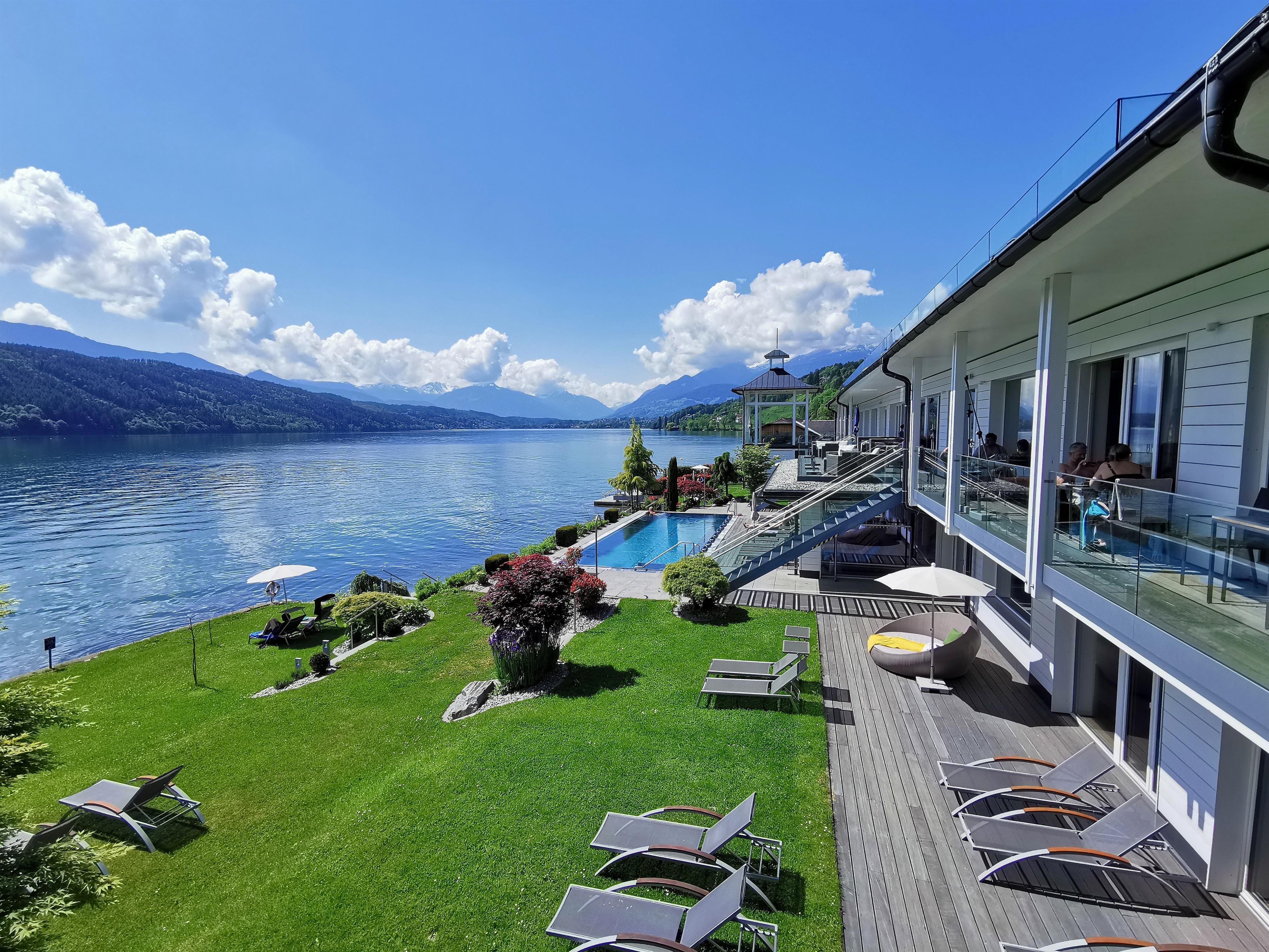 Ein besonderes Highlight sind unsere großen, überdachten Balkone, auf denen Sie Ihre Mahlzeiten in einzigartiger Atmosphäre genießen können – mit traumhaften Blick auf das Stift Millstatt, die schöne Berglandschaft und den See.