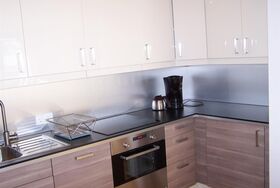 Einrichtungen: Küche – Herd mit 4 Kochplatten, Backofen, Geschirrspüler, Kühlschrank mit Gefrierfach; 1 x SAT-TV, Toaster, Fön, Kaffeemaschine, Wasserkocher;
