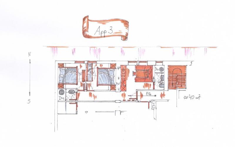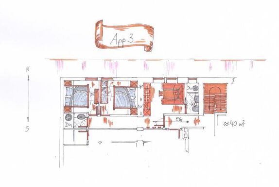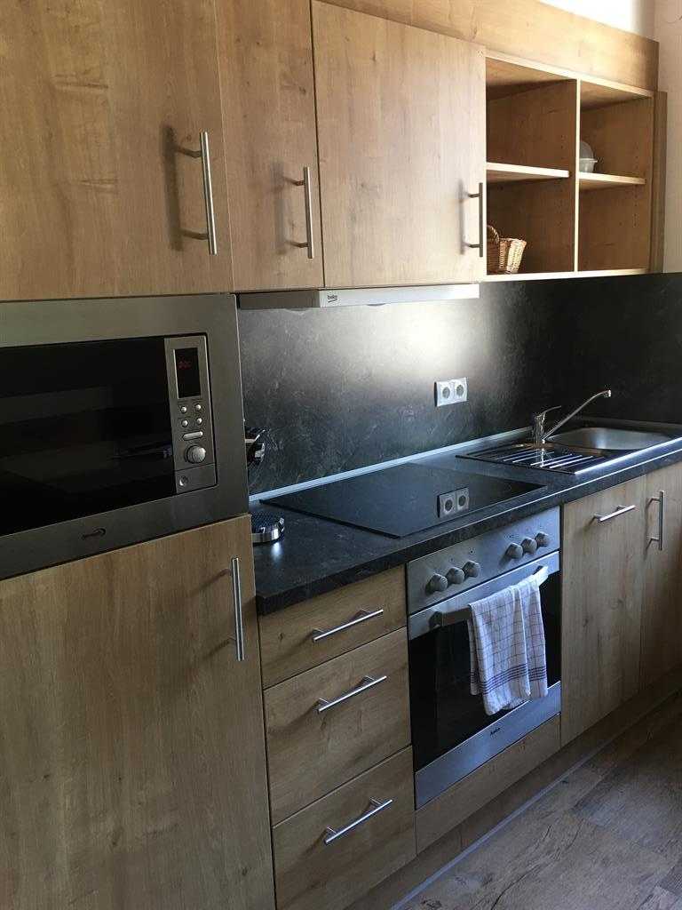 Das Appartement verfügt über 1 Doppelzimmer mit zusätlichem Hochbett, 1 Vierbettzimmer mit Doppelbett, Einzelbett und Hochbett und einem Wohn-Schlafraum mit Schlafsofa für 2 weitere Personen mit komplett eingerichteter Küche (Spülmaschine, Mikrowelle, Backofen, usw.), Flat-TV und Balkon. 2 separate Badezimmer (einmal Dusche und einmal Dusche/WC). Größe ca. 40 m²