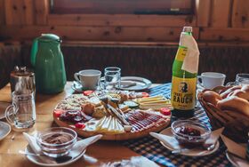 Wir verwöhnen Sie mit Gerichten von Nockfleisch: Gegrilltes Rindfleisch, Schweinsbraten mit Semmelknödel, Wiener Schnitzel, Bratwürste, unserem Hiasl Burger, Leberknödelsuppe... Weiters gibt es die Hiasl Zirbenjaus´n, den bereits berühmten Glundner Käse, Belegte Brote, Kaiserscharrn, Kärntner Reindling, Apfelkuchen, Topfenstrudel u.v.m.