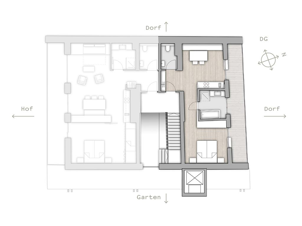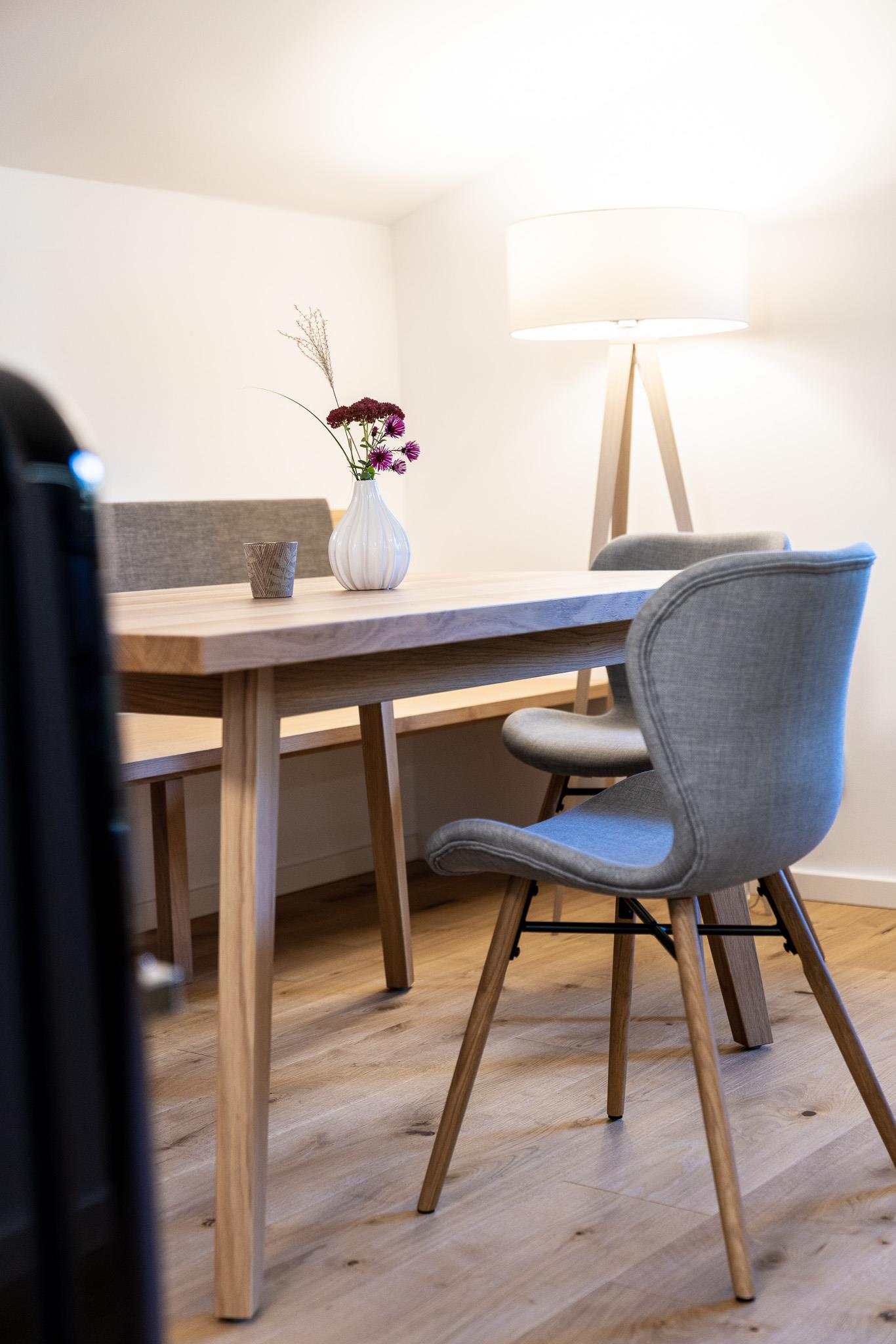 Sicher auch deshalb, weil in ihnen unsere Liebe fürs gutes Wohnen zu spüren ist – überlegt mit Herz und Hirn und ausgeführt mit den besten Handwerkern der Region. Denn, so sind wir überzeugt: Proportionen, Materialien und auch Funktionalität wirken auf Körper, Geist und Seele. Eines haben unsere Ferienwohnungen alle gemein: Vollholz- möbel, Holzböden, klare Linien, und die Ausrichtung aller Zimmer zum Dorf oder in den Garten.
