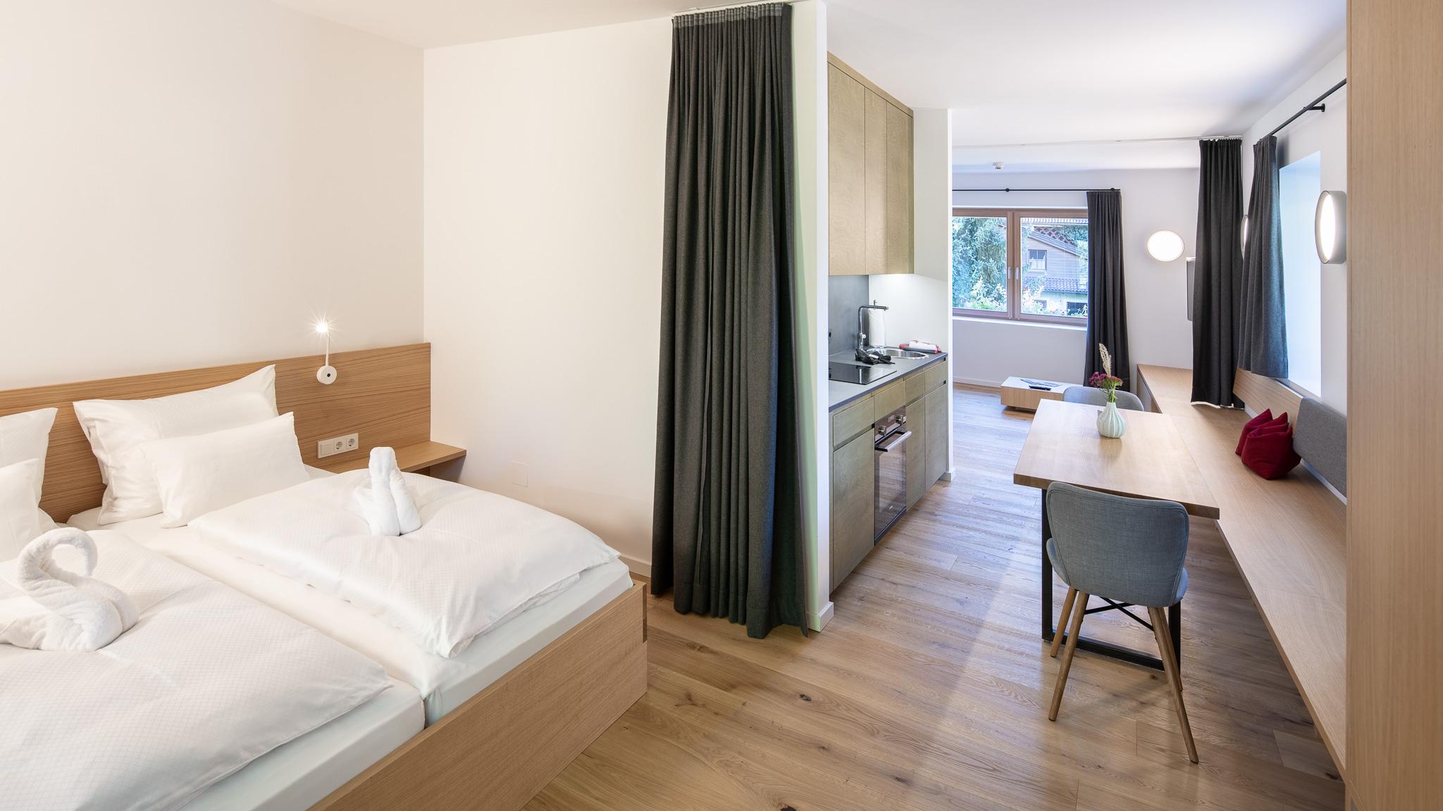 Sicher auch deshalb, weil in ihnen unsere Liebe fürs gutes Wohnen zu spüren ist – überlegt mit Herz und Hirn und ausgeführt mit den besten Handwerkern der Region. Denn, so sind wir überzeugt: Proportionen, Materialien und auch Funktionalität wirken auf Körper, Geist und Seele. Eines haben unsere Ferienwohnungen alle gemein: Vollholz- möbel, Holzböden, klare Linien, und die Ausrichtung aller Zimmer zum Dorf oder in den Garten.