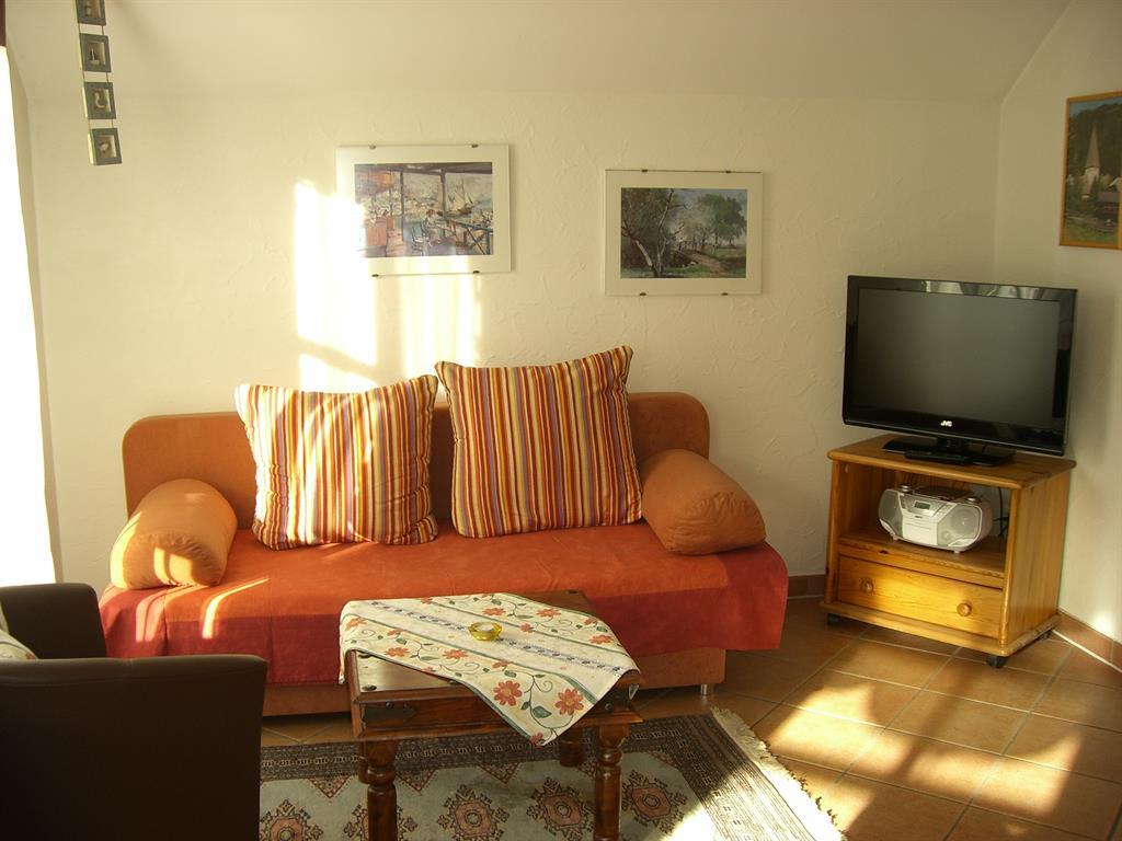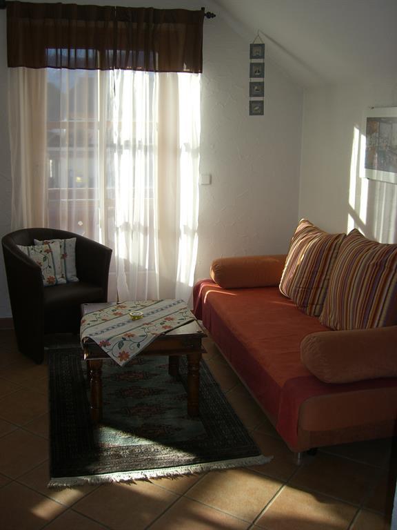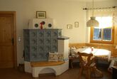 Schlafzimmer, Wohn-Essraum mit Ausziehcouch, Kachelofen, 2 Balkone, Küche, Badezimmer mit Wanne WC getrennt und Vorraum.