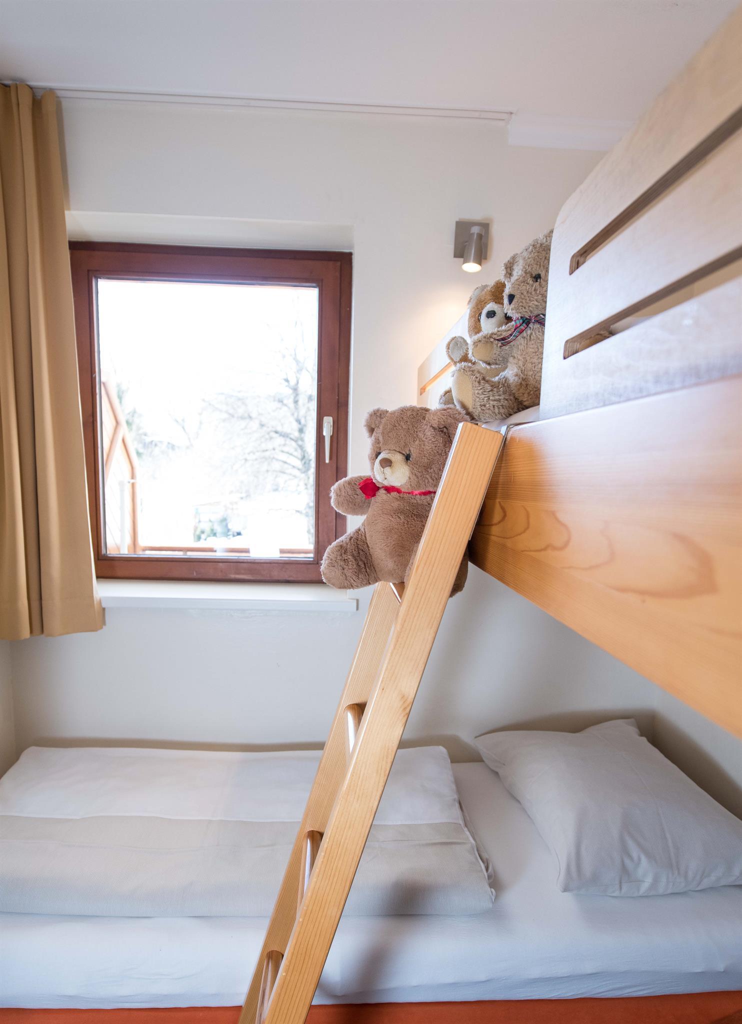 Apartement mit Wohn-Schlafraum (Ehebett und Couch), Kinderzimmer mit Etagenbett