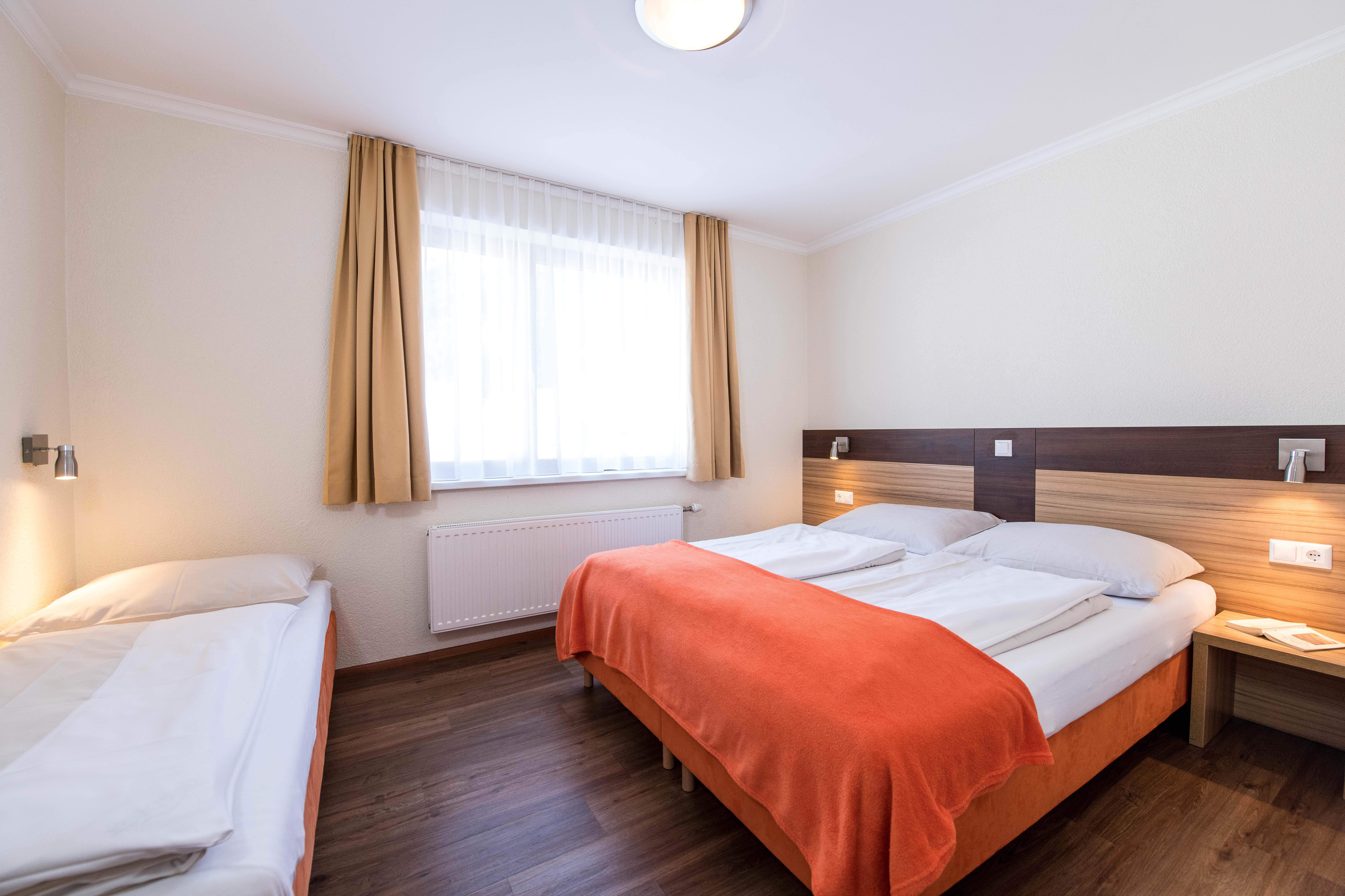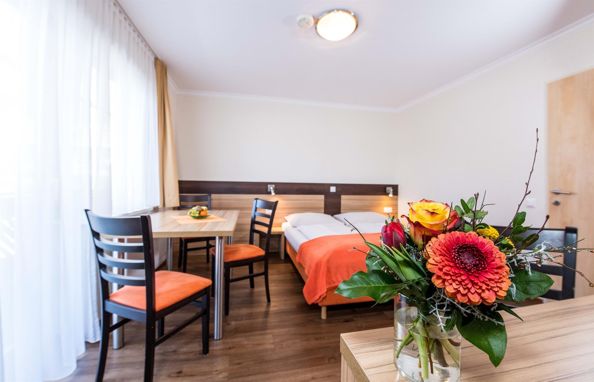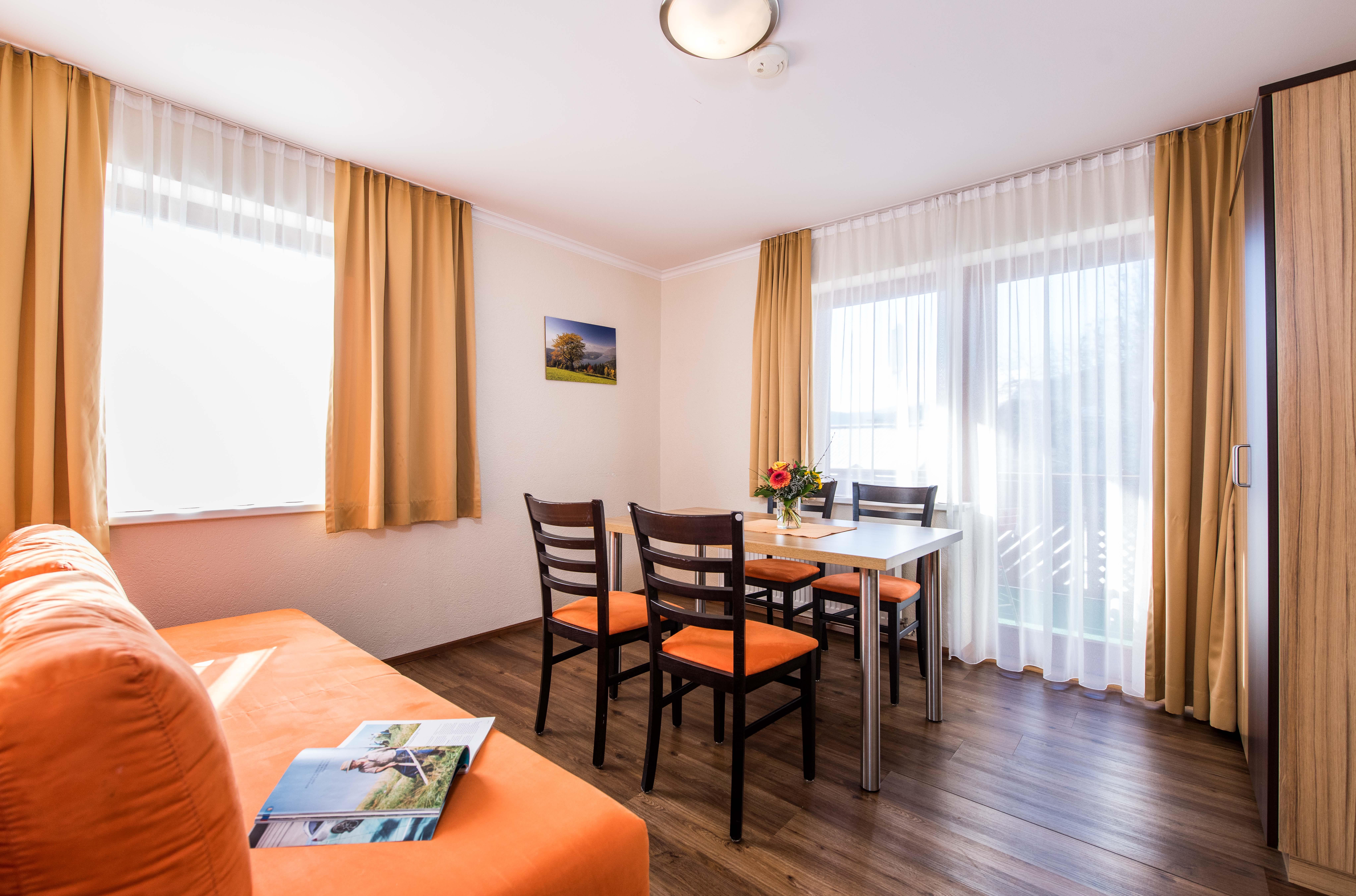 Appartement mit Wohn-Schlafraum, Schlafzimmer,Vorraum, Kochnische, DU/WC, Balkon, Telefon und SAT-TV. Maximal 5 Personen