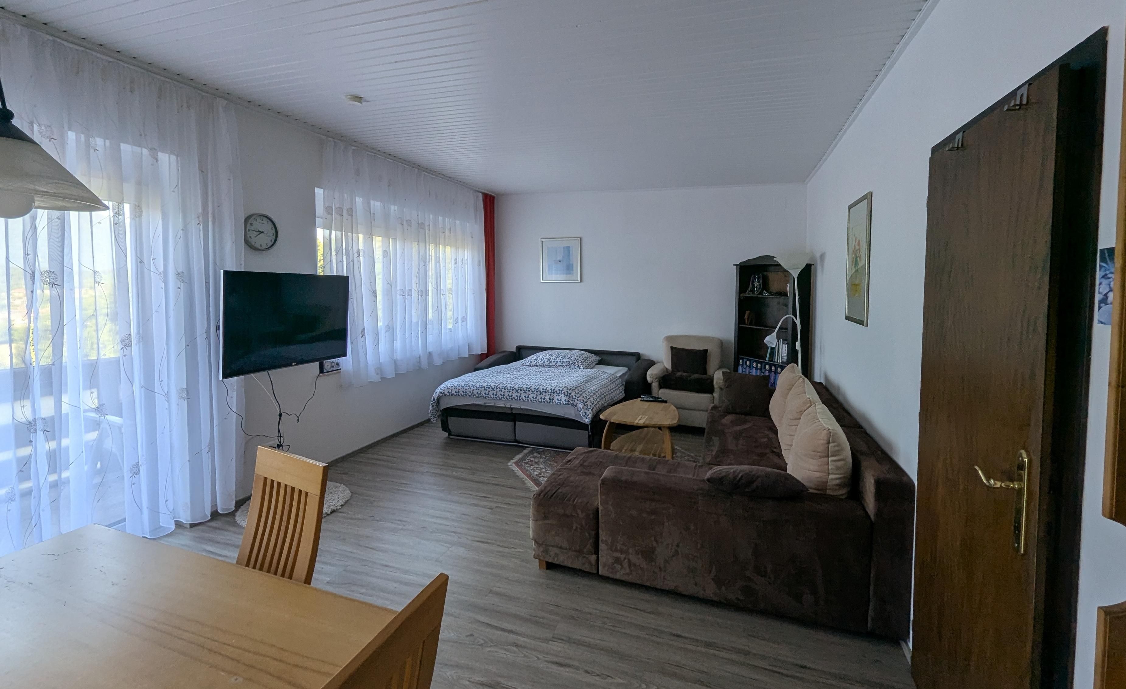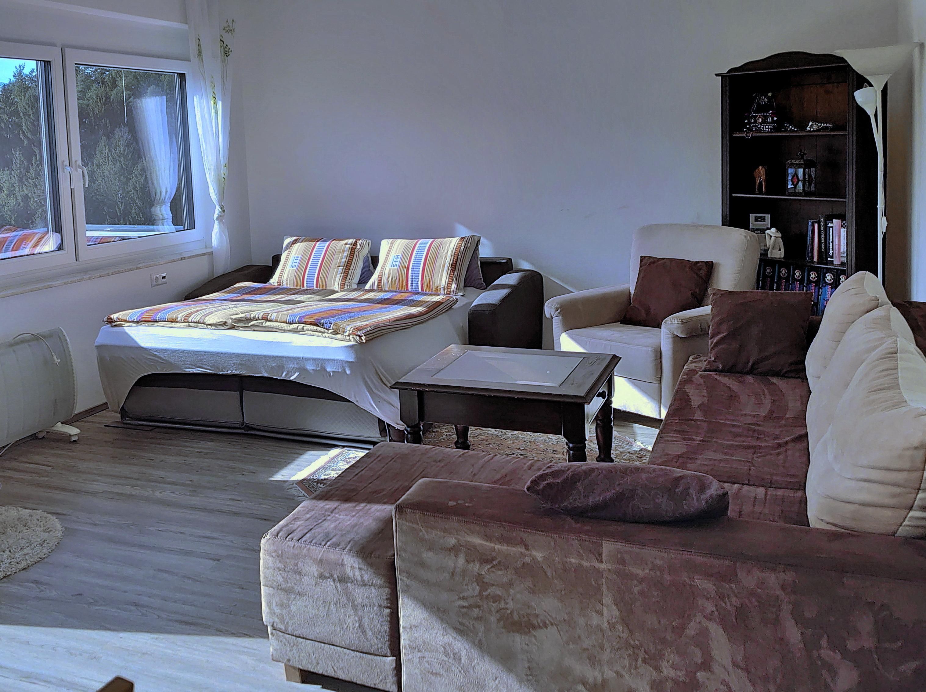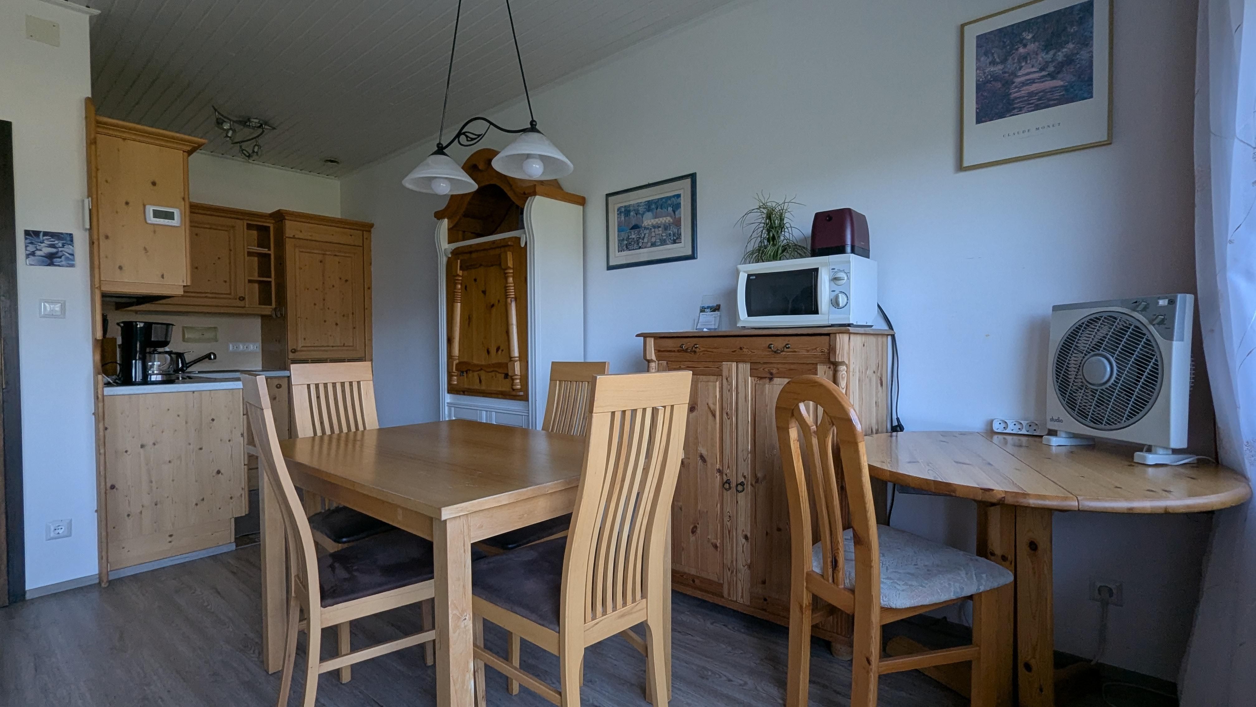 Die Ferienwohnungen befinden sich in den Häusern Eschenweg 17 (Kristin, Susanne im 1. Stock) und 19 (Angelina im 2. Stock). Alle Wohnungen sind modern und komplett ausgestattet und verfügen über einen Südbalkon, einen Vorraum, ein separates Schlafzimmer mit Doppelbett sowie ein Wohnzimmer mit Schlafcouch für 2 zusätzliche Personen (mit 2 weitere Klappbetten haben in unserer größten Wohnung Angelina bis zu 8 Personen Platz). Für unsere Kleinsten bieten wir noch 2 Reisebetten, Wicklauflage und Hochstühle an. Weitere Ausstattung sind je Wohnung 1 Badezimmer mit Dusche und WC und eine voll ausgestattete Küchennische.