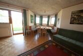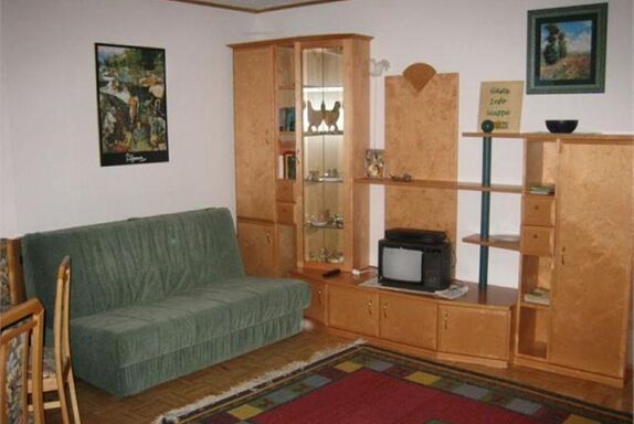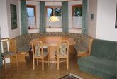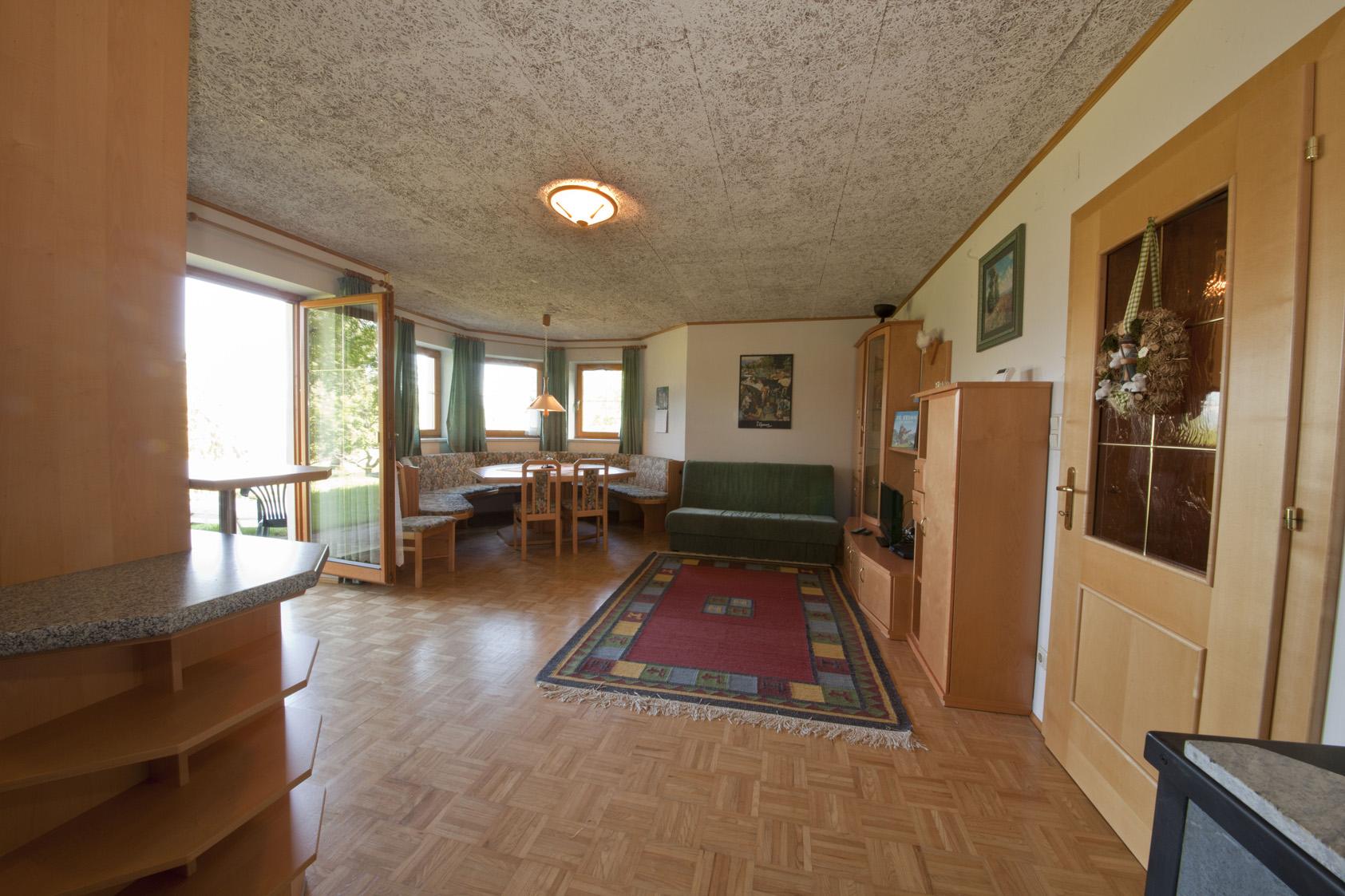 Ca80qm groß,2 separate Schlafzimmer, wobei das Kinderzimmer ein Stockbett und ein frei stehendes Bett hat,ein Bad mit Dusche/WC/Badewanne/Waschmaschine und weiteres WC, großzügig gestaltete offene Küche mit allem Komfort (E-Herd,Backofen, großer Kühlschrank mit Eisfach, Geschirrspüler, Mikrowelle, Wasserkocher, Kaffeemaschine, Dunstabzug...) grenzt an ein geräumiges Wohn-Eßzimmer mit Schwedenofen, Sat-TV, goße, im Erker liegende, Eßecke, mit Platz für eine Großfamilie, Terasse mit Traumrundblick
