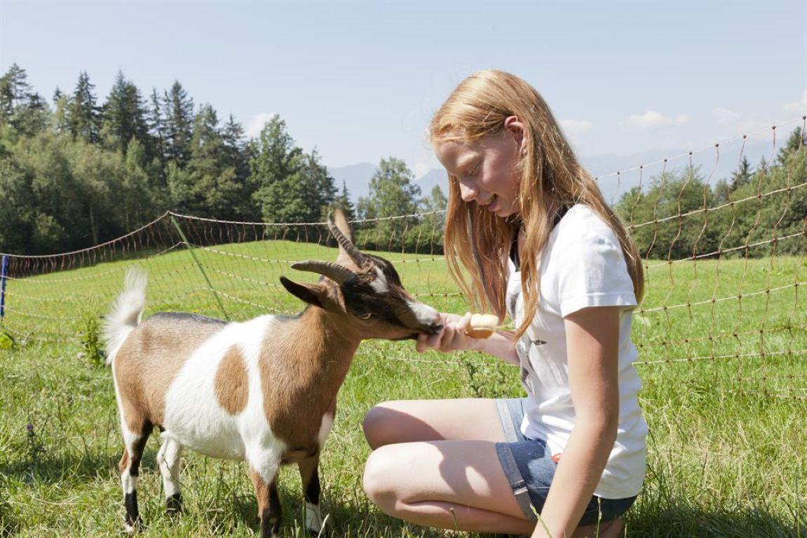 Auf die Kinder warten schon unsere Tiere die sich gerne umsorgen und verwöhnen lassen (Hunde, Katzen, Kühe, Kälber, Ziege, Meerschweinchen,Hühner).