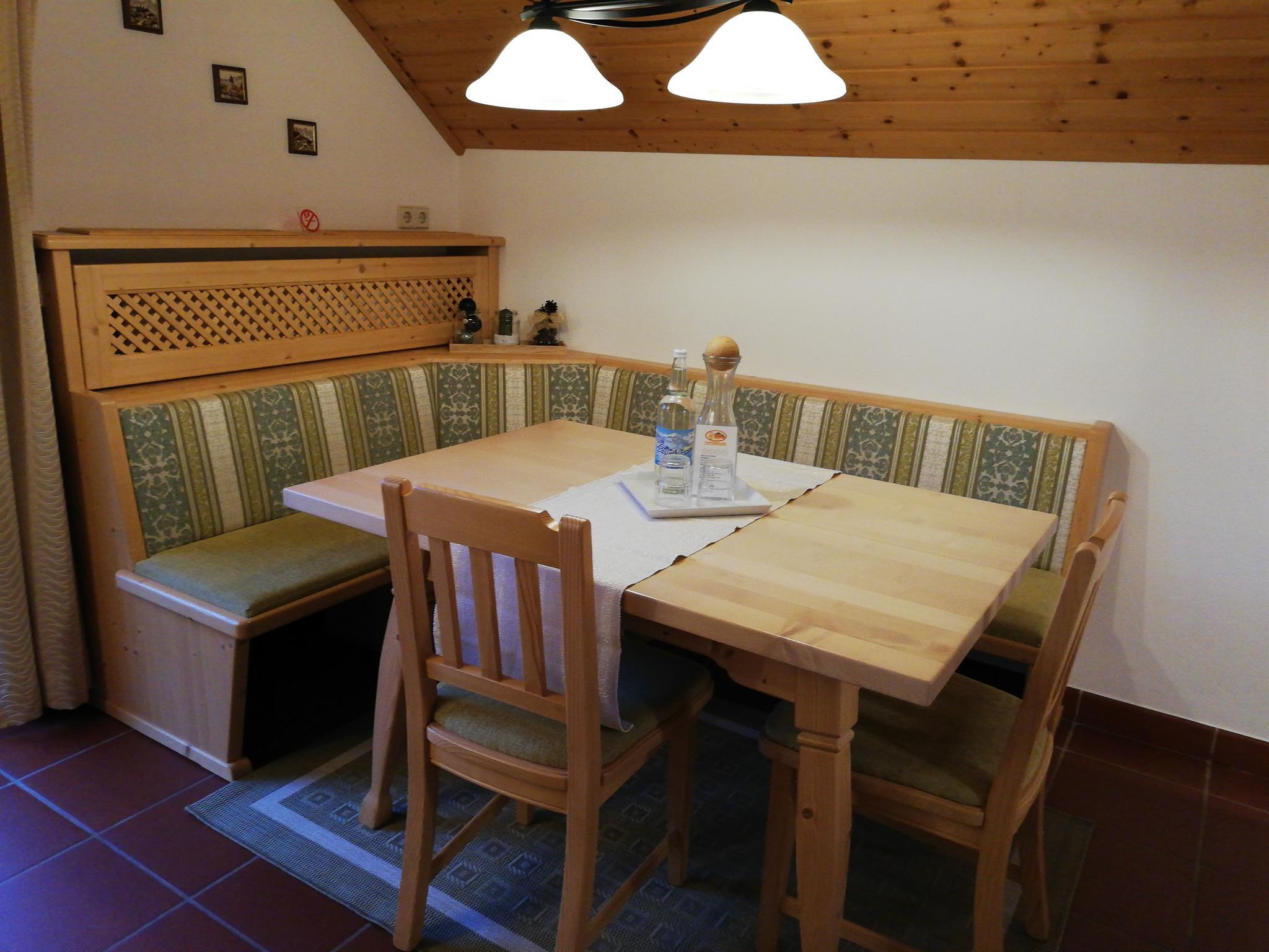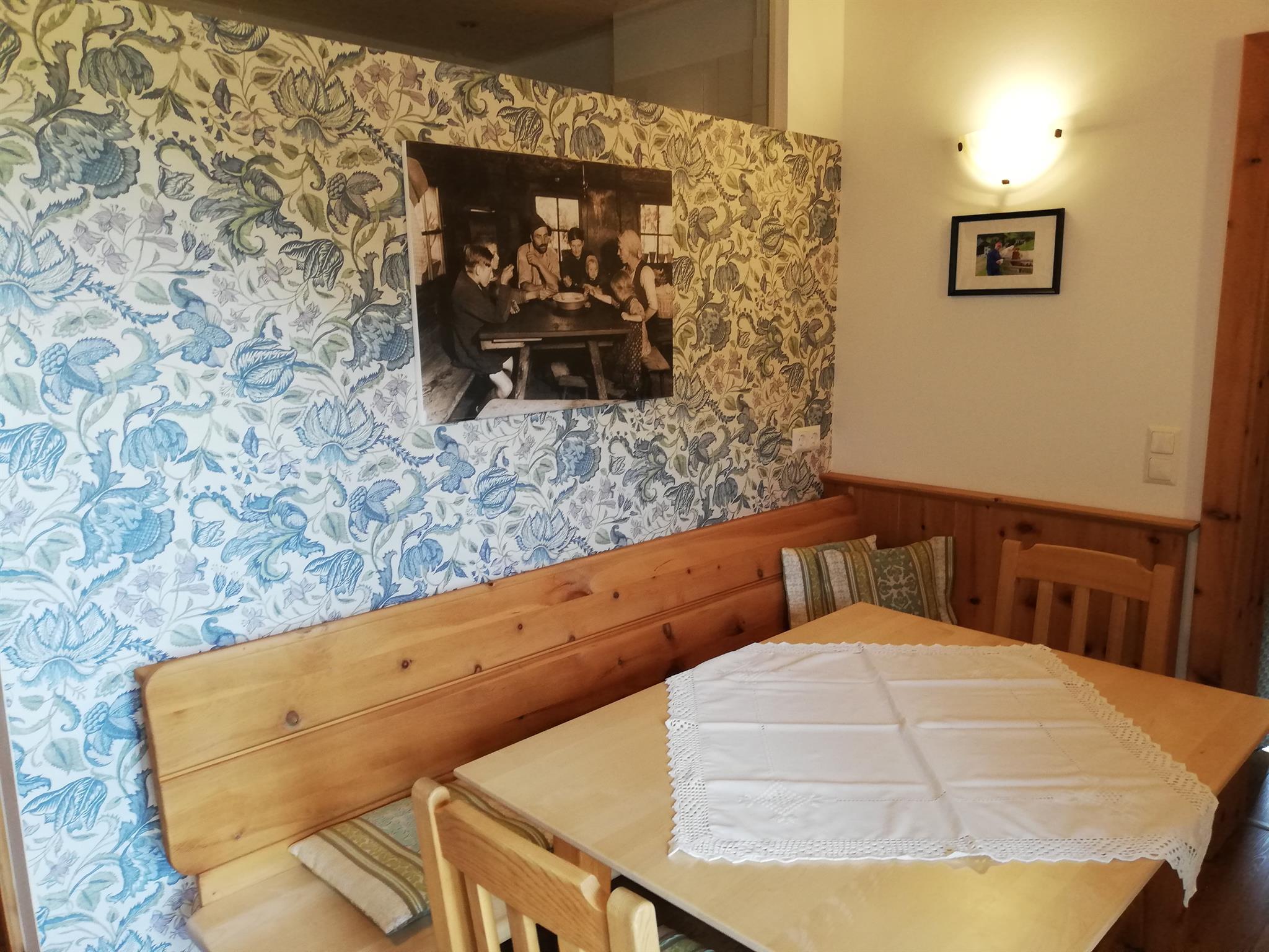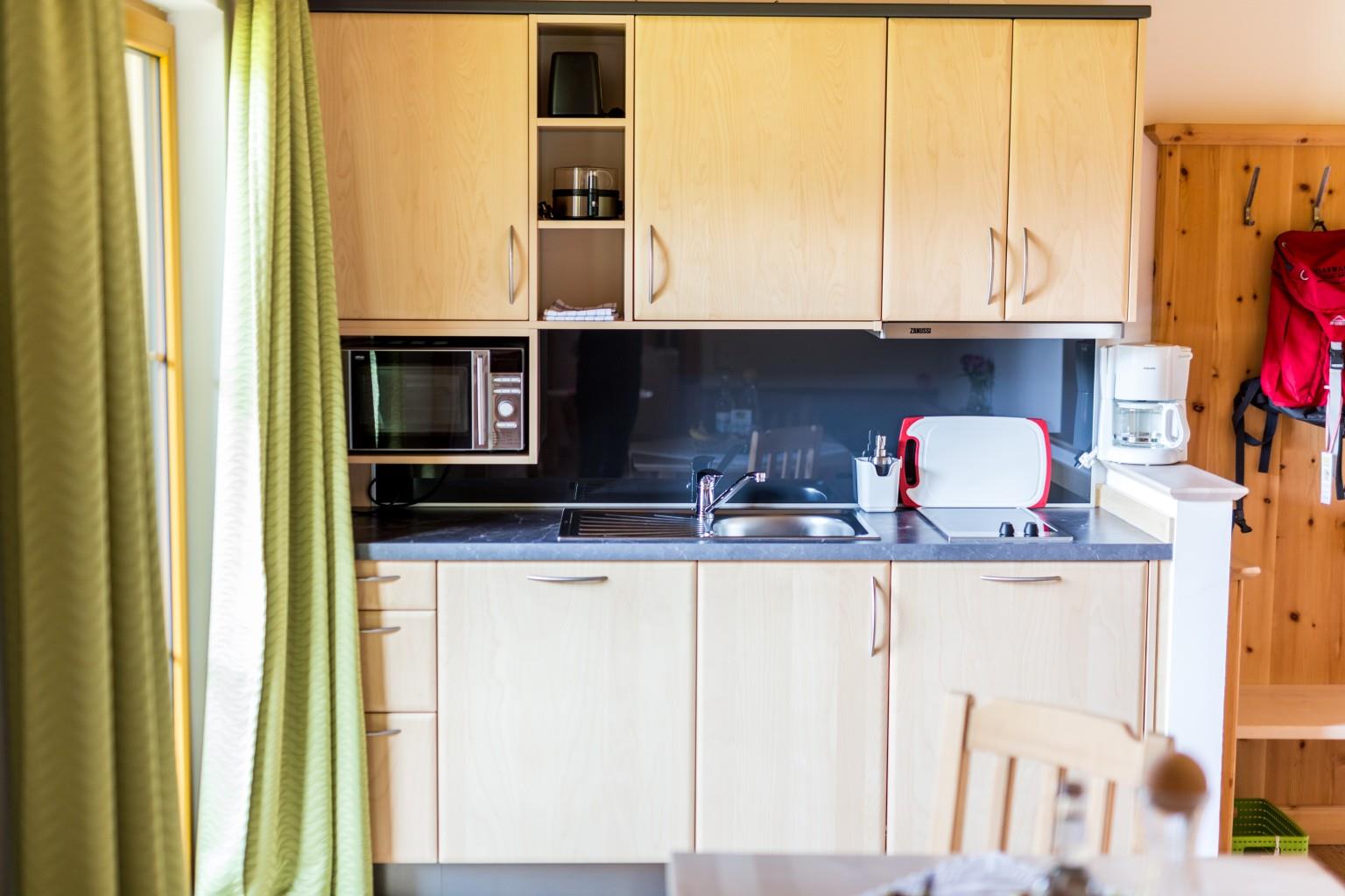 Wunderschönes, 35m² Familienappartement aus heimischen Zirbenholz. Wohnschlafzimmer mit Doppelbett aus Zirbe, Zirbenkleiderschrank, Flexinno Couch (als Stockbett umwandelbar), 1 Cocktailsessel mit Zirbenholztisch, Flat-TV. Küchenzeile mit Geschirrspüler, Mikrowelle, Kühlschrank, Zweiplattenherd, gemütliche Zirbenessecke, Dusche/WC, Garderobe, Südbalkon und kostenloses W-Lan im gesamten Haus.