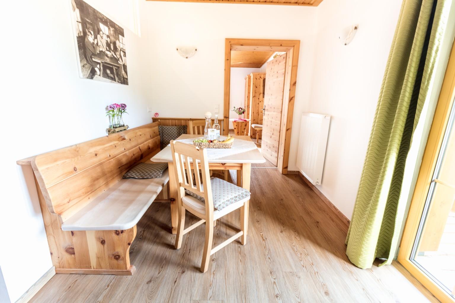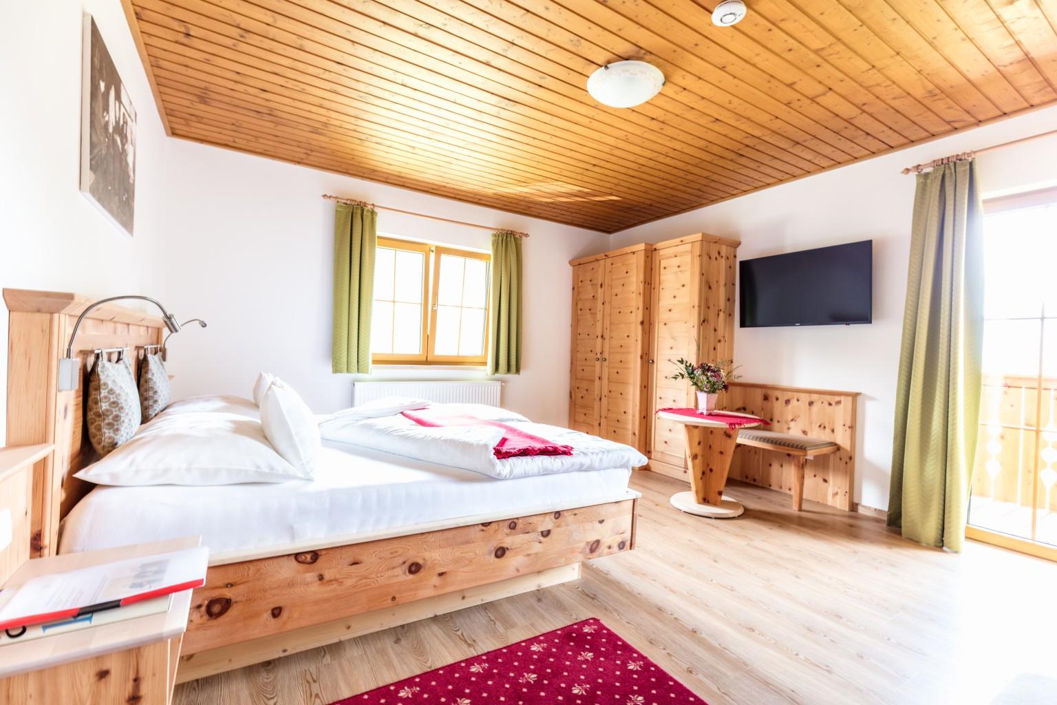 Neben der Ferienwohnung für 4 Personen wurde der Hoferbauer um 3 Wohneinheiten erweitert. Das Fichtendoppelzimmer, das Zirben-Familienapartment und die Zirbensuite. Der moderne Landhausstil zieht sich durch die Einheiten und die einheimischen Hölzer tragen zu einem wohligen Wohnklima bei.