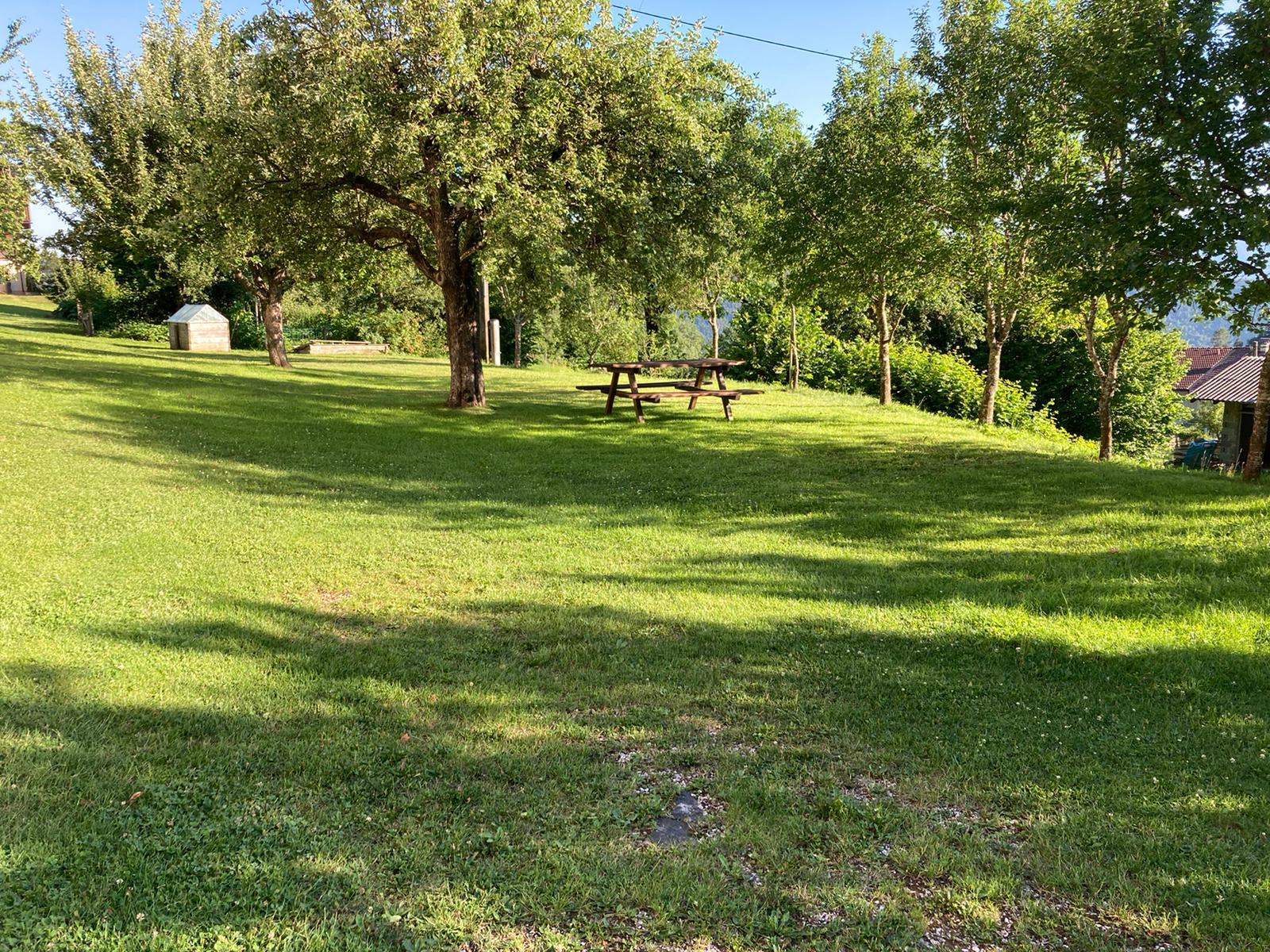 Rund um das Haus erstreckt sich ein großer Obstgarten mit Tischtennis, einigen Sitzplätzen und Sonnenliegen.