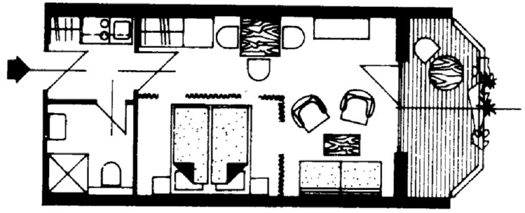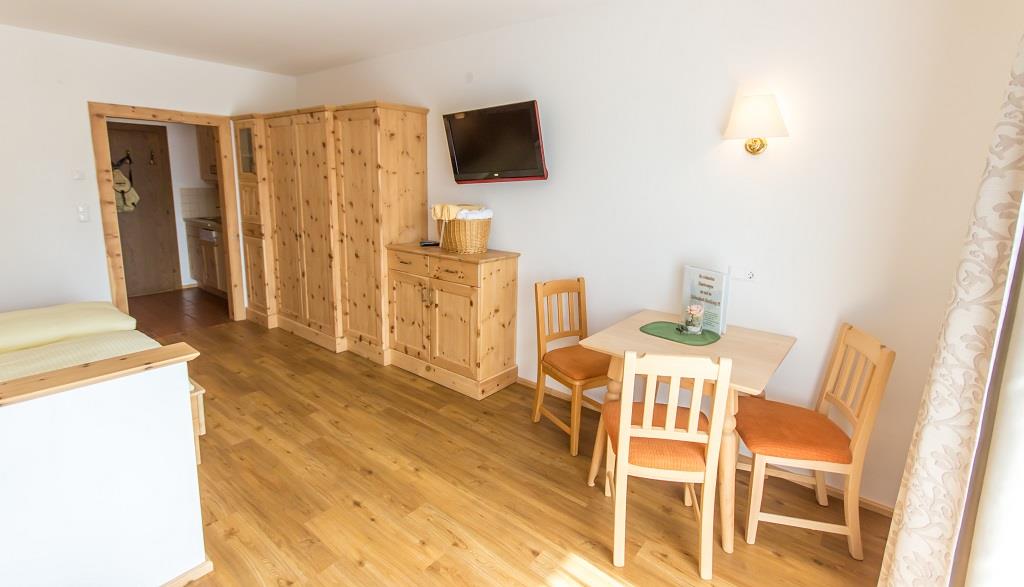 bestehend aus einem Wohnschlafraum, Kochnische, Geschirrspüler, Espresso Kaffeemaschine, Mikrowelle Dusche/WC, LCD-TV mit Radio, Südbalkon, Zirbenstube, Nichtraucherappartement