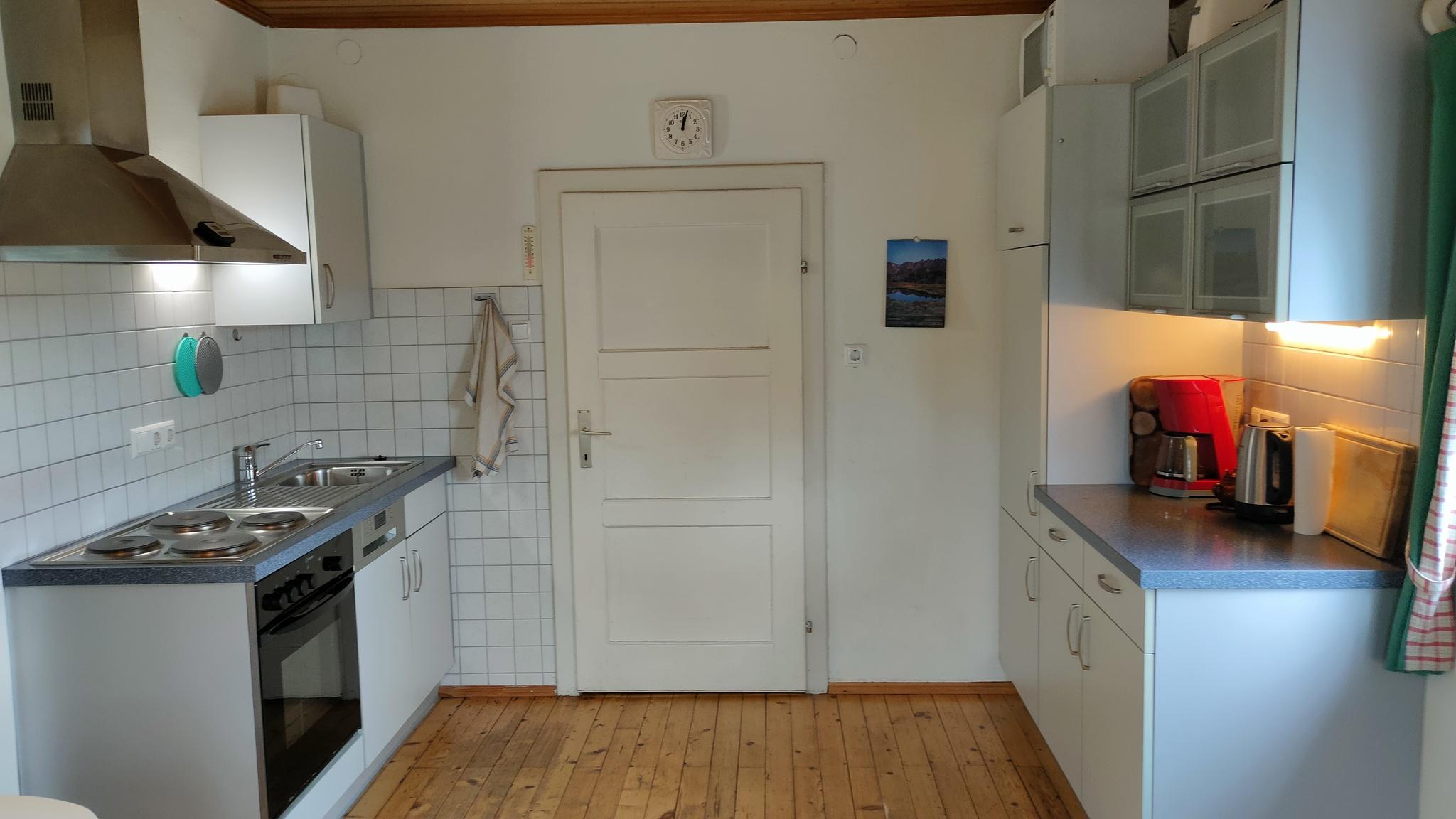 Im Erdgeschoß des Hauses befinden sich Küche (gut ausgestattet: E- Herd, Kühlschrank mit Tiefkühlfach, Geschirrspüler, Kaffeemaschine, Mikrowellenherd etc.) mit Esstisch, eine Zirben-Stube mit LCD-SAT-TV und Schlafcouch, Bad und WC. Im Obergeschoß sind 3 Schlafzimmer: eines mit Doppelbett, angrenzend eines mit 2 Betten (und Balkon) und extra zugänglich eines mit einem französischen Bett.