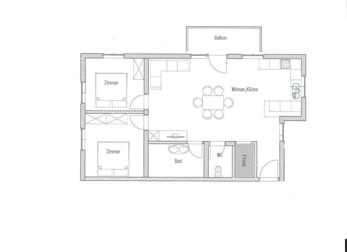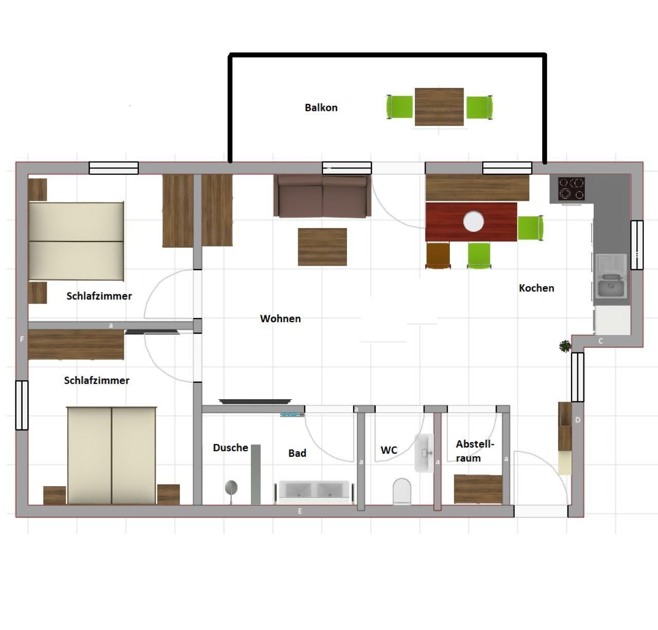 Die Wohnung verfügt über: 2 Doppelzimmer, 1 Badezimmer mit grosszügiger Dusche und Waschtisch, 1 seperates WC. Der grosszügige Wohnraum besteht aus einer voll ausgestatteten Küche mit Geschirrspüler, Backofen und Mikrowelle, einem gemütlichen Essbereich, einem ausziehbaren Sofa für 2 weitere Personen, Flat-TV und einem Balkon mit herrlicher Aussicht. Grösse: ca. 72 m² im 2.Stock.