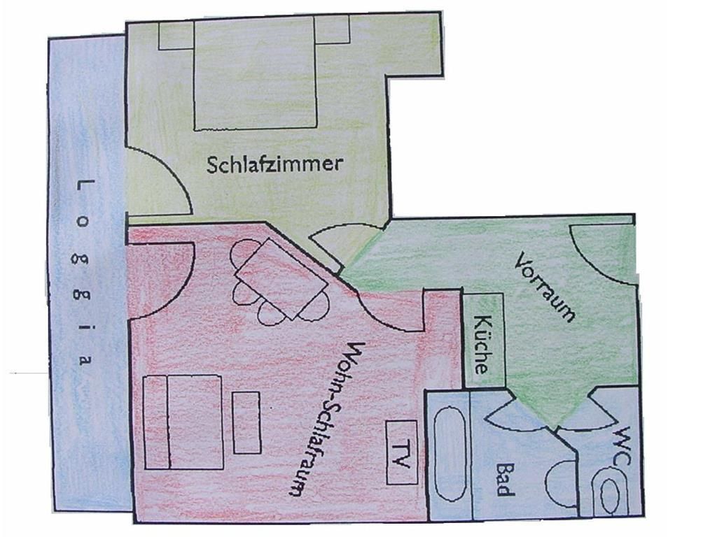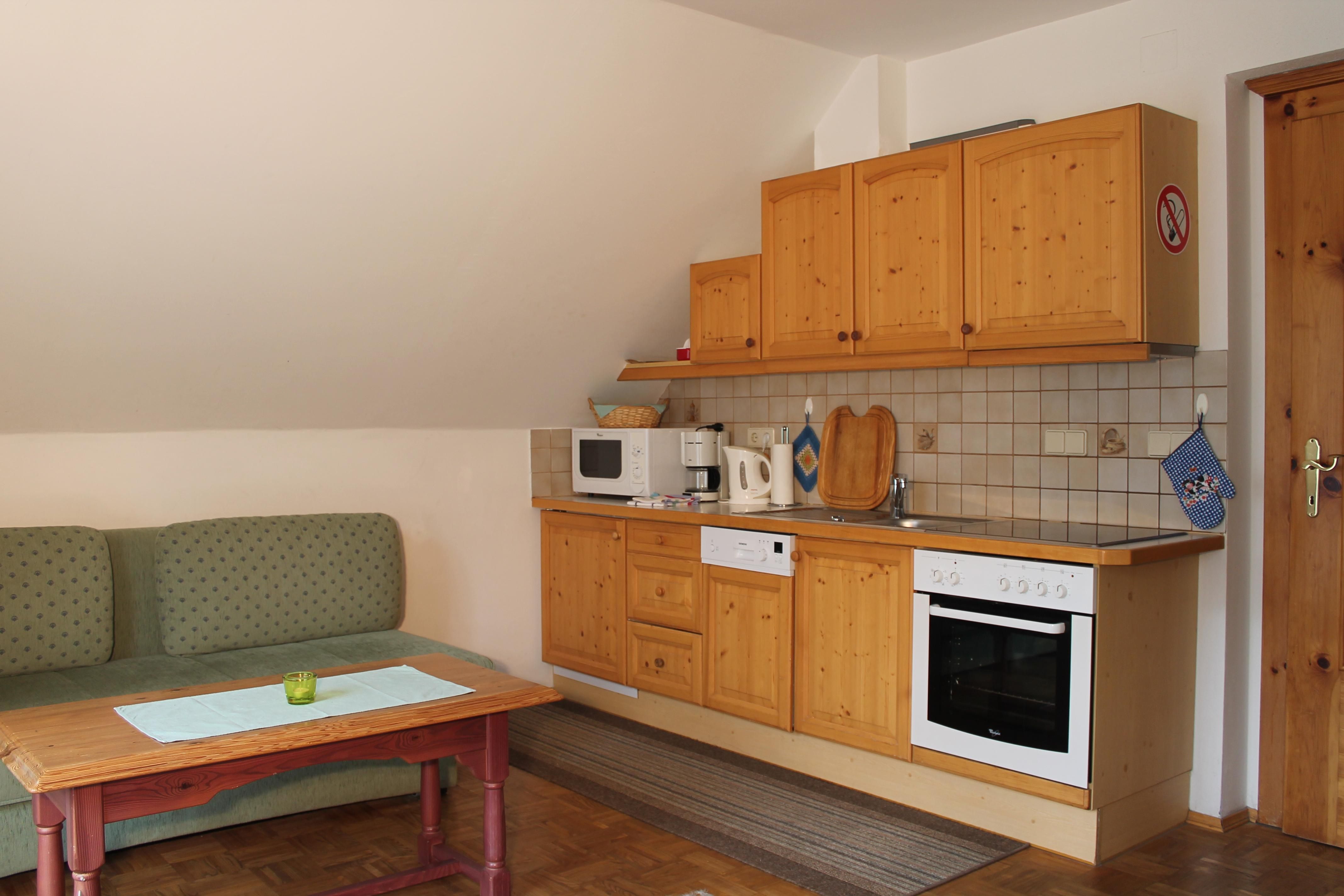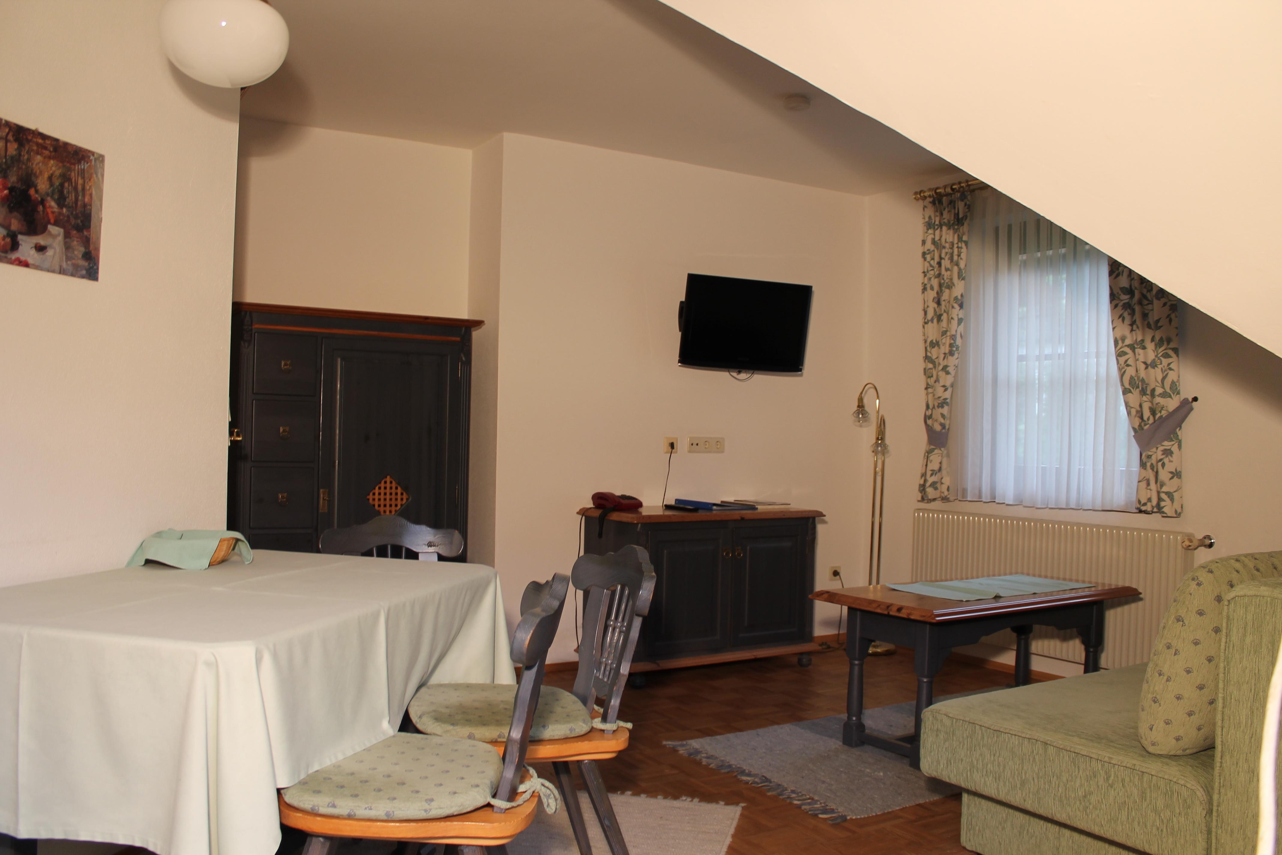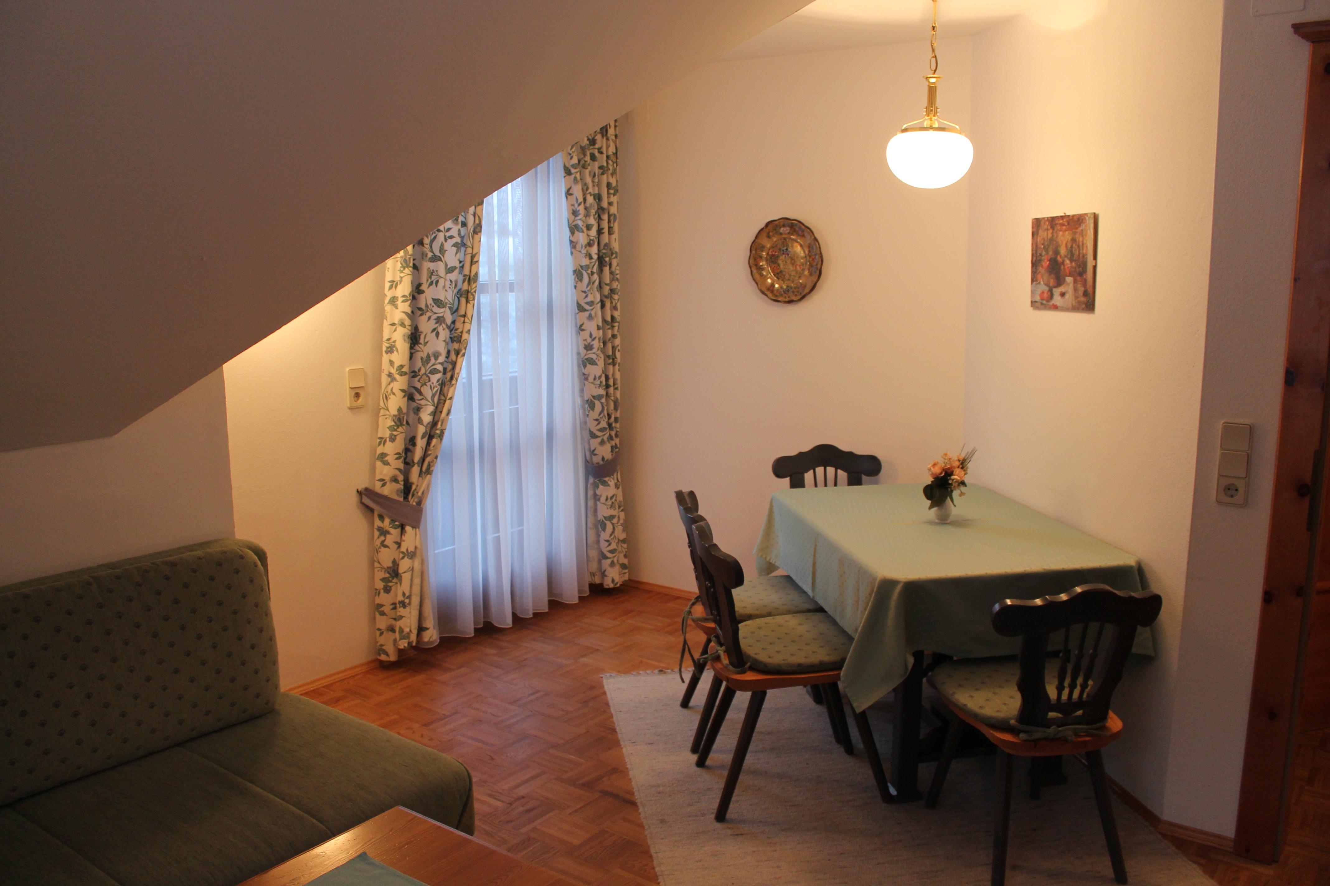Die in Richtung Westen zur Morgensonne ausgerichtete Ferienwohnung bestehend aus einem Doppelzimmer, einem großen Wohn- Schlafraum mit ausziehbarer Doppelcouch und komplett eingerichteter Küchenecke, Bad/WC, Farb-SAT-TV (Flat TV), Radio, Telefon, Wireless Internet und großem Balkon. Die Ferienwohnung hat die ideale Größe für Familien mit 4 Personen und mit einem Zusatzbett finden darin auch 5 Personen Platz.