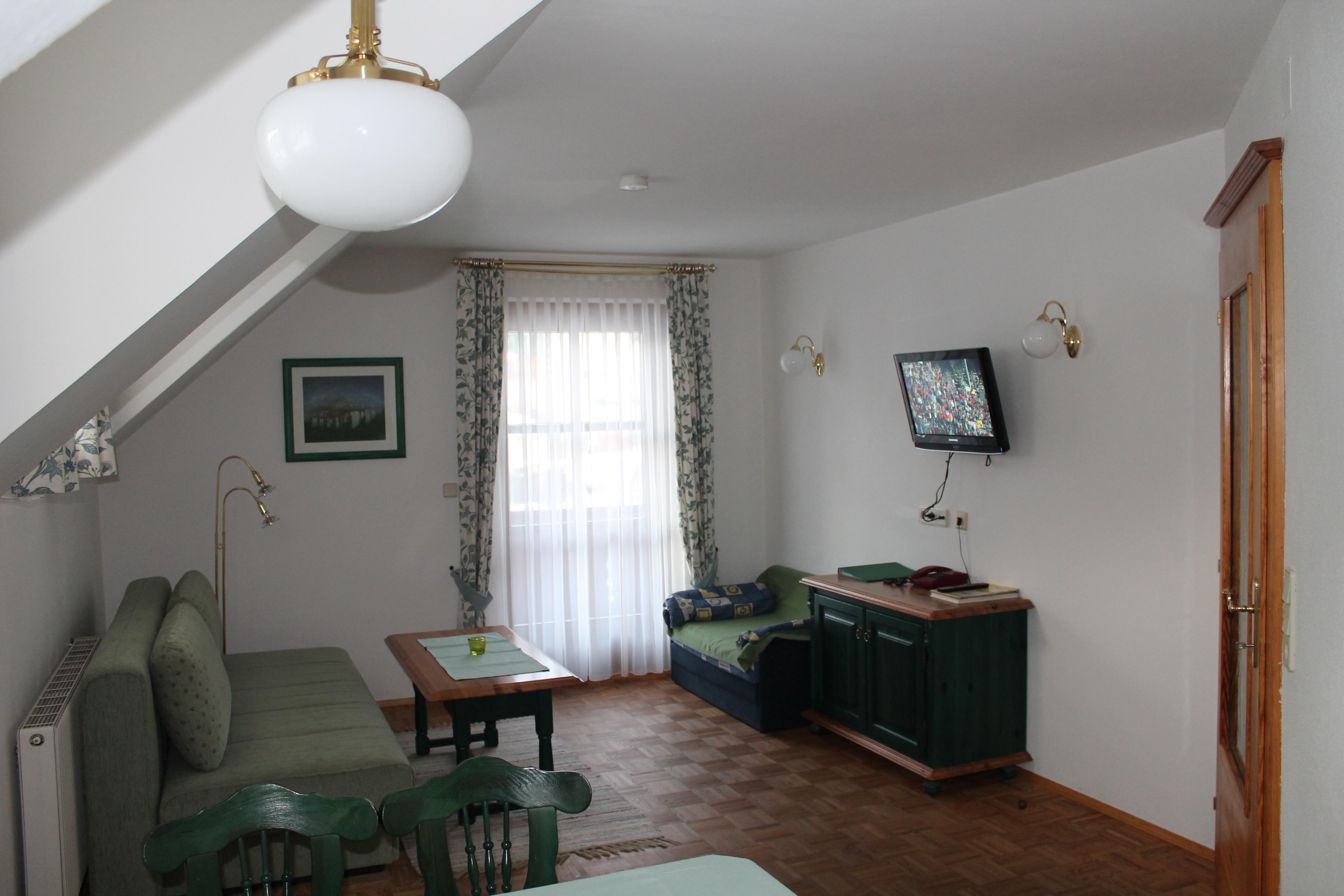 Die zur Nachmittags- und Abendsonne ausgerichtete Ferienwohnung bestehend aus einem Doppelzimmer, einem großen Wohn- Schlafraum mit ausziehbarer Doppelcouch und komplett eingerichteter Küchenecke und Geschirrspüler, Bad/WC, Farb-SAT-TV (Flat TV), Radio, Telefon, Wireless Internet und großem Balkon.
