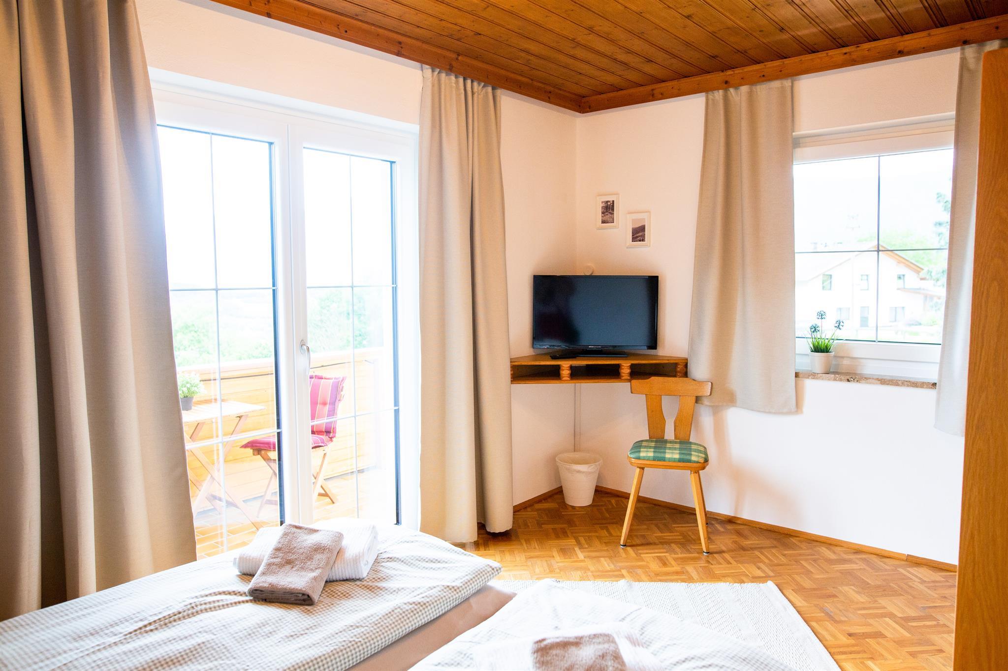 Unsere bäuerlichen, gemütlichen und liebevoll eingerichteten Ferienwohnungen für 3-4 Personen sind mit zwei Schlafzimmern (Ein Bett ist eine Ausziehcouch), einer Küche mit Essecke und einem Bad inklusive Dusche und WC, SAT-TV, WLAN sowie (größtenteils) mit einem sonnseitig ausgerichteten Balkon ausgestattet. Zusätzlich gibt es die Möglichkeit ein Doppelzimmer mit Dusche, WC und SAT-TV, zu den Ferienwohnungen dazuzubuchen.