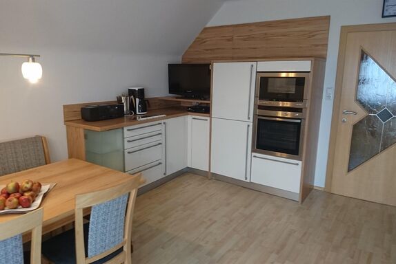 • komplett ausgestatteter Küche (Kochfeld, Backofen, Mikrowelle, Wasserkocher, Kaffeemaschine, Geschirrtücher usw...)
