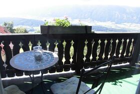 Doppelzimmer mit DU/WC und Balkon mit Blick auf den Millstätter See und die umliegende Bergwelt.