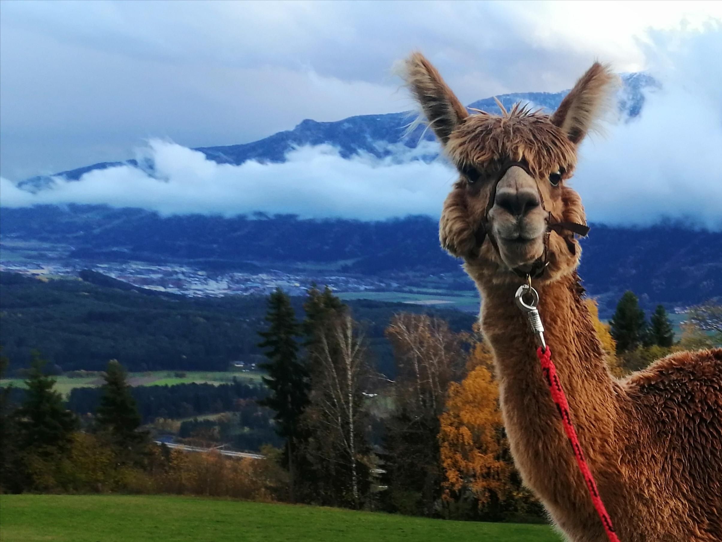 Schnapp dir ein flauschiges Alpaka und genieße eine entspannte Alpakawanderung, bei der du die Zeit vergisst.