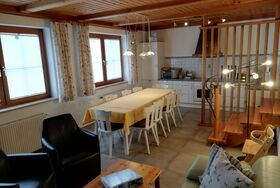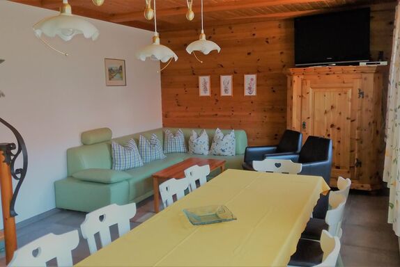 Ferienhaus Mörtbauerhof Zwei Stockwerke, vier Schlafzimmer, zwei Vorräume, zwei Flat TV mit SAT, zwei Duschen mit WC, grosse Wohnküche im Parterre, Kaffeeküche im ersten Stock, gemütliche Sitzterrasse direkt vor dem Ferienhaus