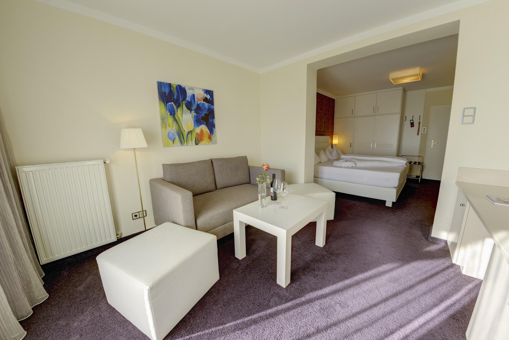 Großzügiges, neu gestaltetes Wohnappartement, bestehend aus Schlafzimmer und Wohnraum, 2. kleines Schlafzimmer entweder für 2 Kinder oder als Schnarcherzimmer, großes Badezimmer mit Dusche/WC, Föhn, Kühlschrank, Radio, Telefon, Sat-TV, Safe und großem Südbalkon.