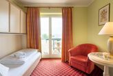 Komfortables Zimmer mit italienischen Stilmöbeln, Schminktischchen, mit getrennter Du/WC, Föhn, Radio, Telefon, Sat-TV, Safe und Südblkon. Internetzugang