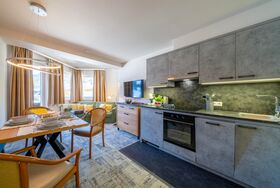 mit zwei getrennten Räumen, ein Schlafzimmer mit 3 Betten und ein Wohnzimmer mit Schlafcouch, Essecke, Küche extra, Bad und Dusche, 2 WC, Doppelwaschbecken, Sat-TV, Radio, Telefon, Fön, Balkon STORNO: bis 1 Monat vor Anreise GRATIS 1 Monat bis 1 Woche vor Anreise 70% vom Buchungspreis letzte Woche vor Anreise 90% vom Buchungspreis