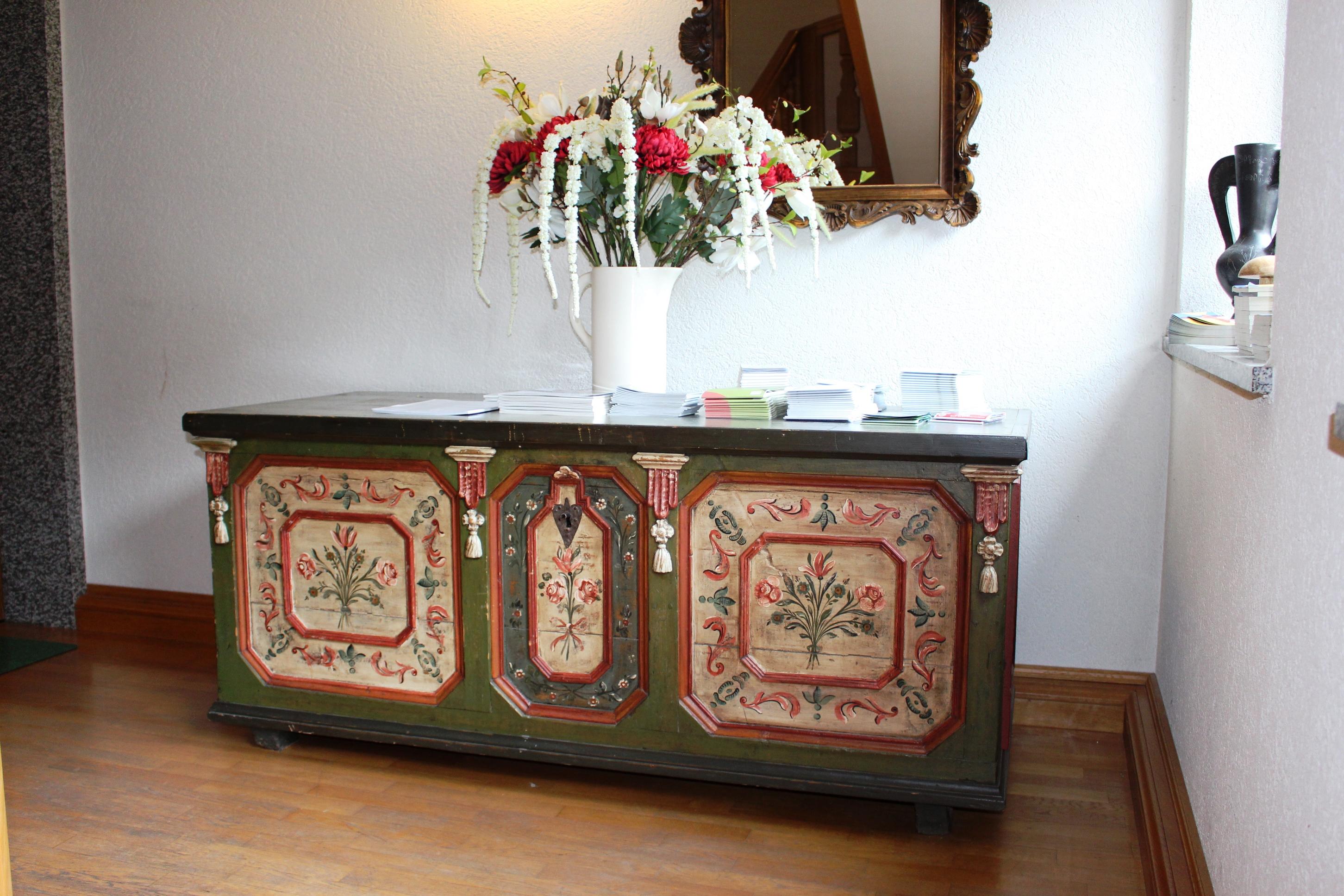 Unsere Ferienwohnung „Haydn“, ein Studio mit 45 m² im Erdgeschoss, ist mit hellen Möbeln ausgestattet und bietet einen Schlaf/Wohnraum, einen Vorraum, WC getrennt, Badezimmer mit Dusche und Badewanne, Waschbecken, Föhn, Hand- und Badetücher, eine abgetrennte voll ausgestattete Küche inklusive Geschirrspüler. Vorgelagert ist unsere schöner Garten mit Sitzmöglichkeiten und grosser Liegewiese im Sommer.