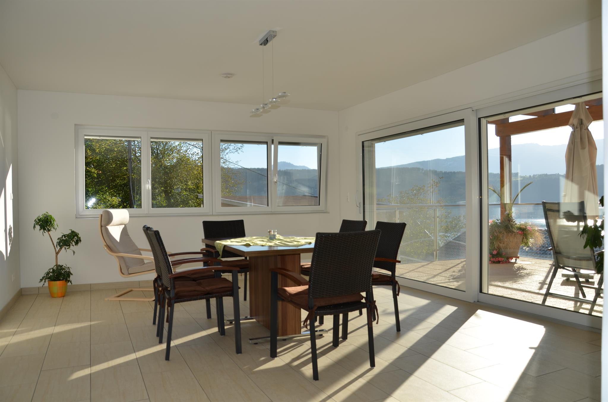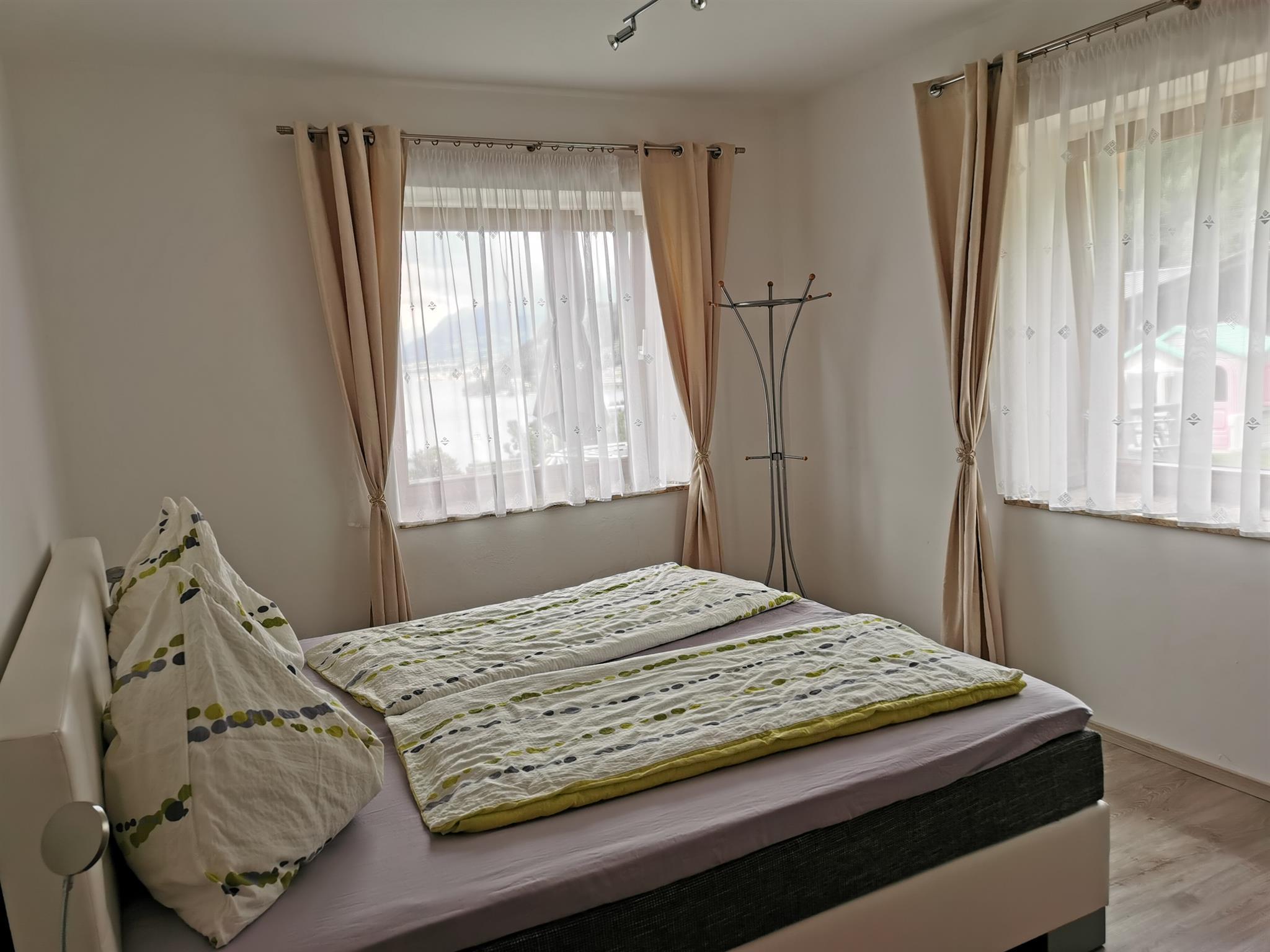 Die ca. 55 m² große Ferienwohnung Nr.2 liegt ebenerdig mit überdachter Süd-Terrasse, die zum draußen Frühstücken einlädt, und bietet einen herrlich freien Blick über den See und die umliegende Bergwelt. Die Wohnung besteht aus 2 Schlafzimmern, einem Badezimmer (Dusche, WC, Haartrockner), separatem WC beim 2. Schlafzimmer und einer Wohnküche.