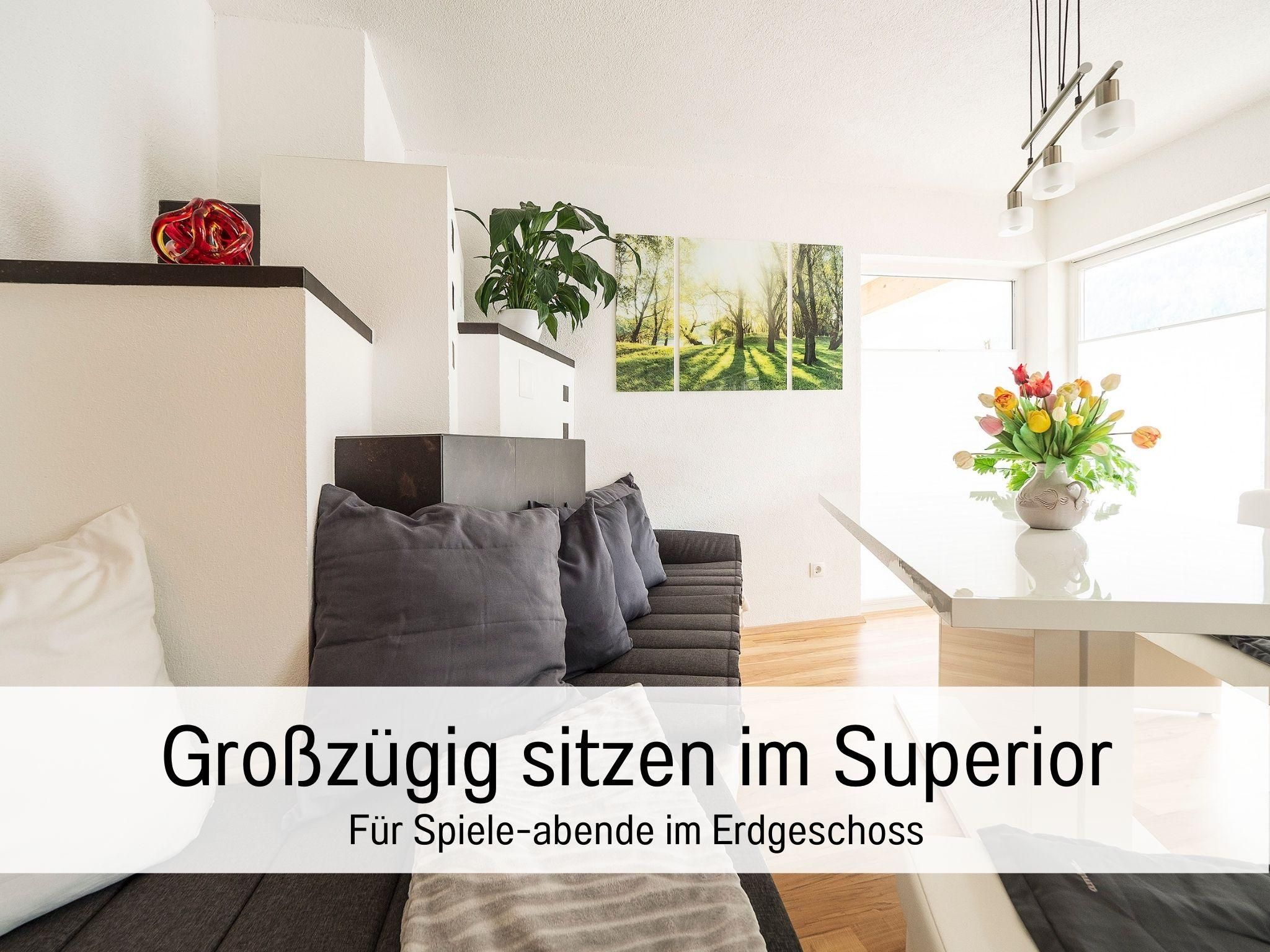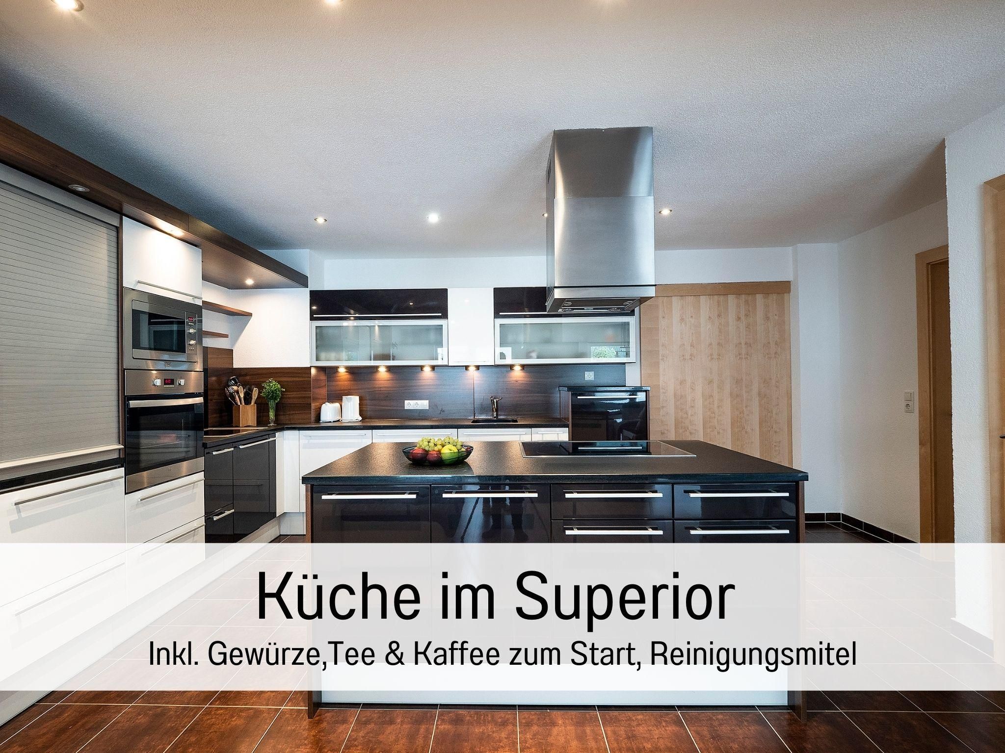 TOP MODERN, gemütlich und großzügige 94 m²! Das ist unser Superio Appartement mit Terrasse! 2 Doppelzimmer, 2 Badezimmer – eines mit einer großen Badewanne die zum Entspannen einlädt und WC und eines mit Dusche/WC und Produkte der Naturpflegeserie Pure Green. HIGHLIGHT: große und sehr moderne Wohnküche mit Liebe zum Detail, Kräutern, Obst und moderner Bauernofen im Wohnbereich. Cerankochfeld, Geschirrspülmaschine, Kühlschrank mit Gefrierschrank, Nespresso-Kaffeemaschine, Bialetti-Espressomaschine, Kaffeemühle, Soda-Stream, Wasserkocher, Toaster, Schlafsofa für eine weitere Person, Essplatz, der TV ist Chromecast-kompatibel. uvm. damit keine Wünsche offenbleiben. Auf Anfrage barrierefrei möglich.