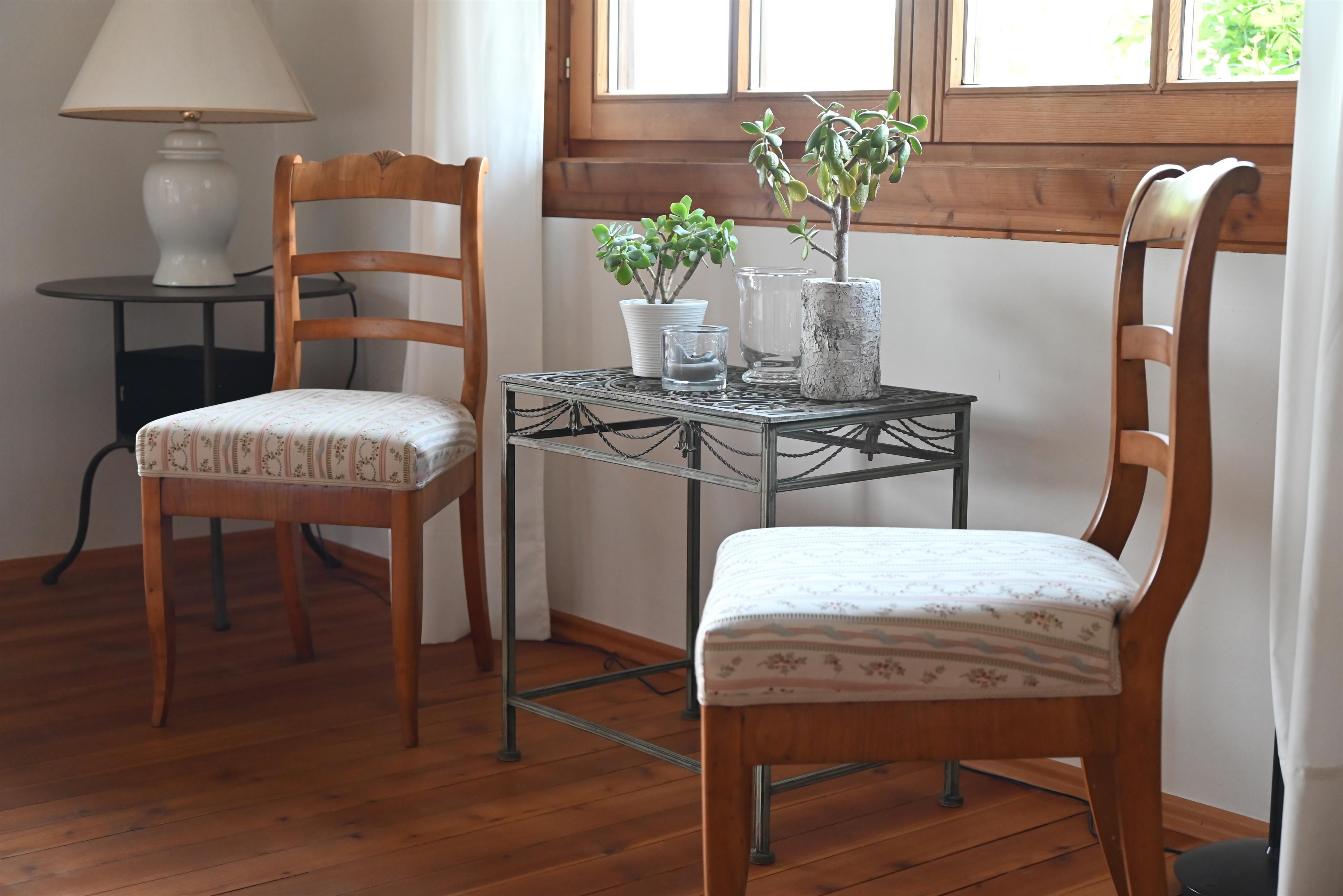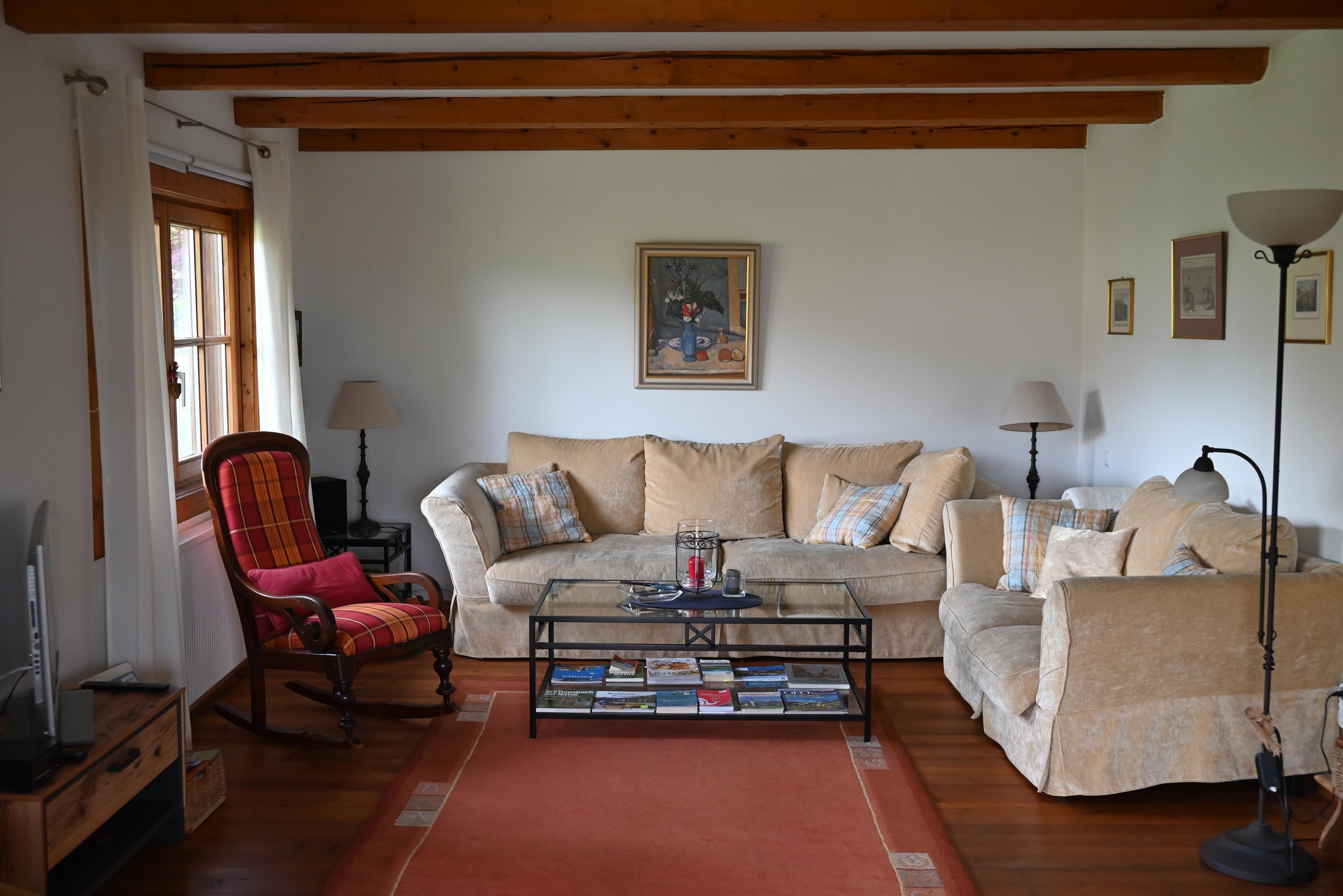 Neben dem Kachelofen wird das Haus mit Elektroradiatoren und zusätzlichen Ventilatoren beheizt.