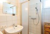 • Ein Badezimmer mit Dusche, Doppelwaschbecken und WC