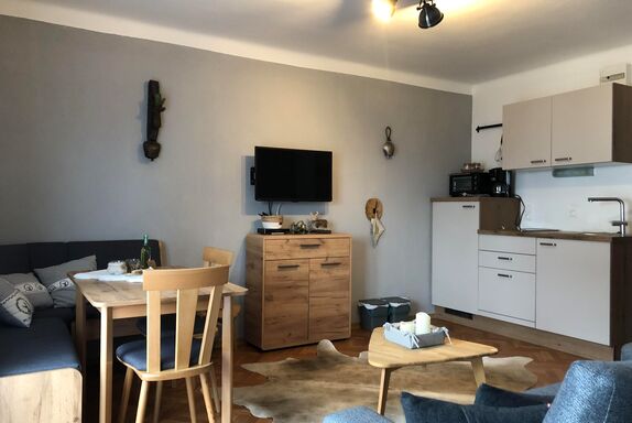 Kuhglocken befindet sich an der Vorderseite unseres Hauses und bietet von Ihrem Balkon einen schönen Blick auf die Berge. Die helle Wohnung besteht aus einem Wohn-/Esszimmer mit Sofa, einem separaten Schlafzimmer und einem Badezimmer.