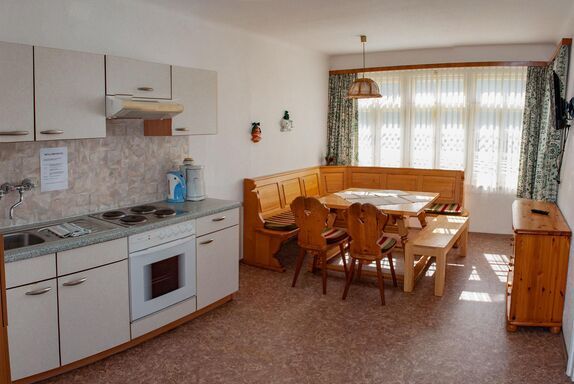 Vorraum, 1 große Wohnküche mit gemütlicher Eßecke, SAT-TV, Küche mit 4-Plattenherd,