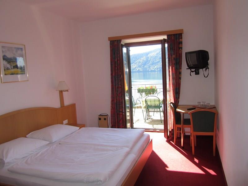 Doppelzimmer mit Dusche/WC, Föhn, großem Terrassenbalkon, Seeblick, Sat-TV, Telefon gegen Gebühr, WLAN frei, Kühlschrank, Tisch mit 2 Stühlen, erster Stock, Seeblick,