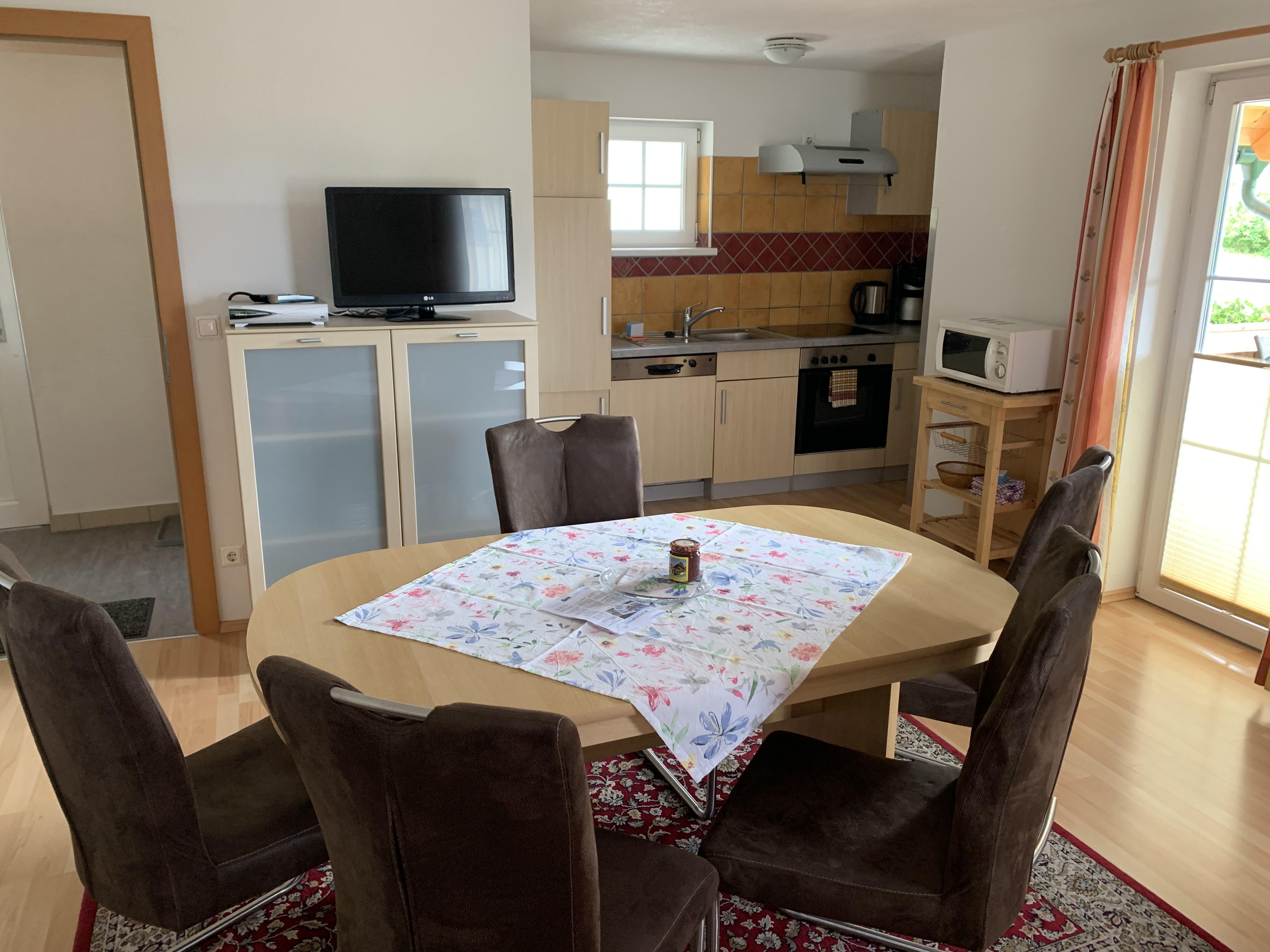 Das liebevoll eingerichtete Ferienhäusl ist ein eigenes Gebäude neben unserem Bauernhaus. Das ebenerdige Ferienhaus verfügt über zwei Doppelzimmer mit jeweils einem Doppelbett, einem Vorraum, Badezimmer mit Dusche, WC und Waschmaschine sowie einer komplett ausgestatteten Wohnküche, Fernseher mit Sat-TV, WLAN und einem Ostbalkon mit ganz viel Morgensonne. Bettwäsche und Handtücher werden zur Verfügung gestellt.