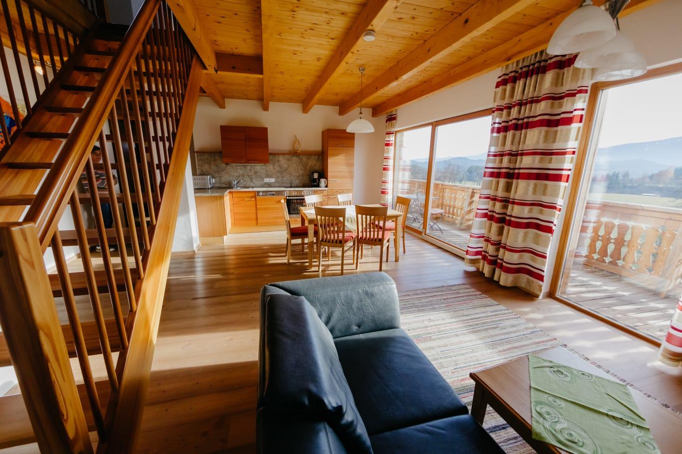 Winterurlaub im Landhaus Löscher - genießen Sie die Winterzeit in einer unserer über 100 m² großen voll ausgestatteten Ferienwohnung. Hier gibt es auf zwei Etagen verteilt genug Platz zum Entspannen.