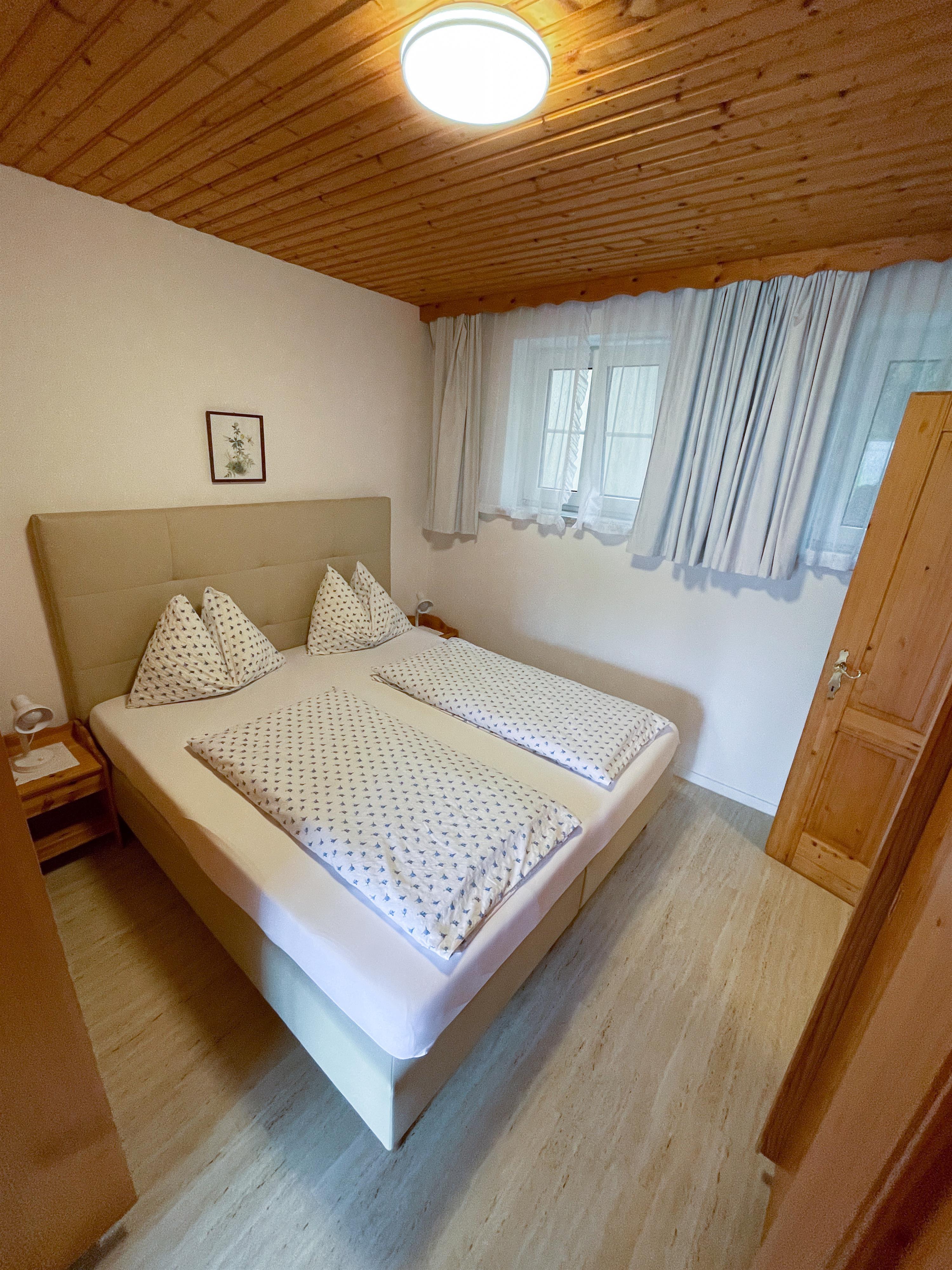 Suedseitige Ferienwohnung mit Terrasse und Seeblick fuer 4 Personen (Typ I) ca. 42 m² 2 Schlafraeume, Wohnraum mit Essgarnitur, Kuechenecke mit Mikro und Geschirrspueler, Bad, WC, Foen, Sat-TV, WLAN