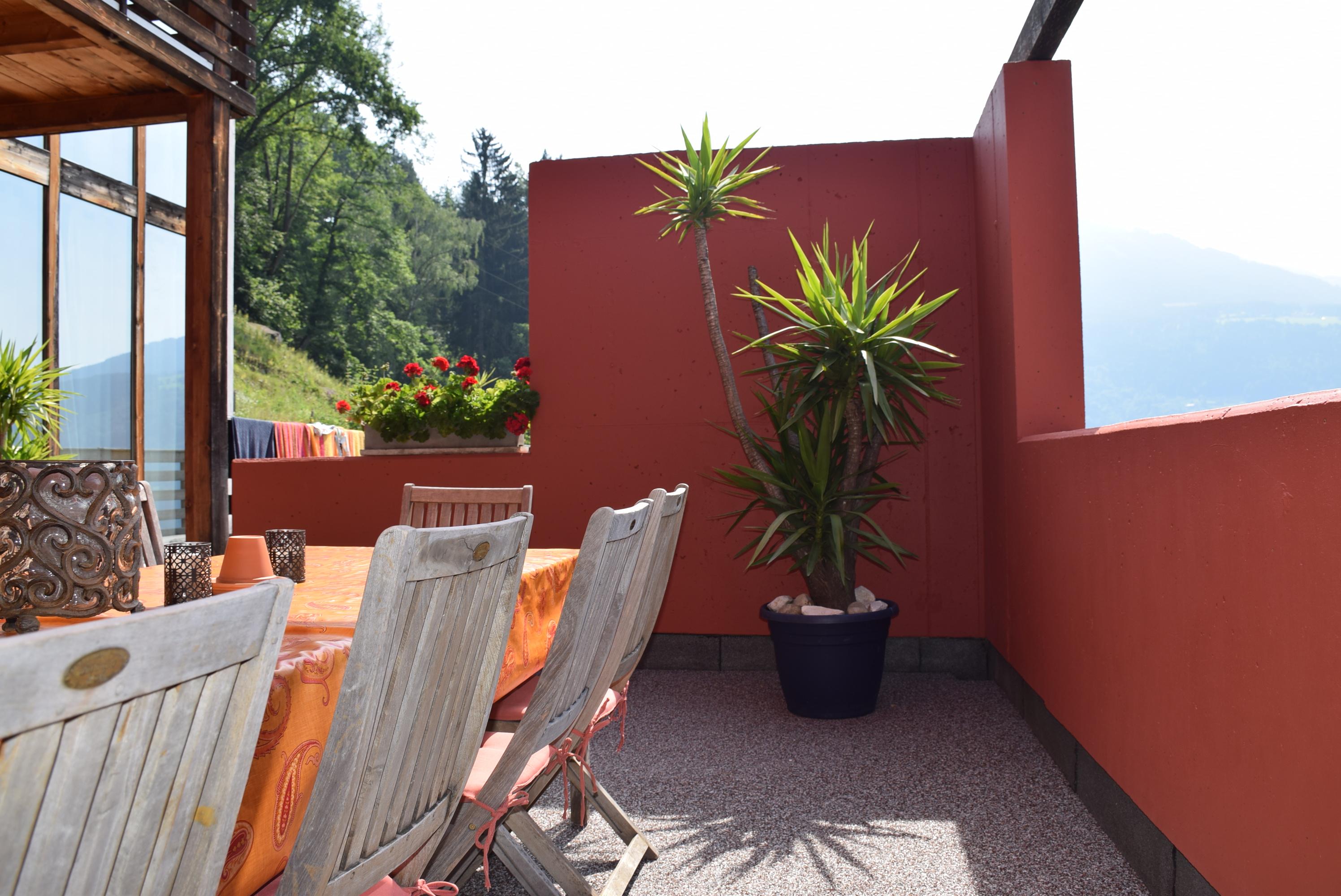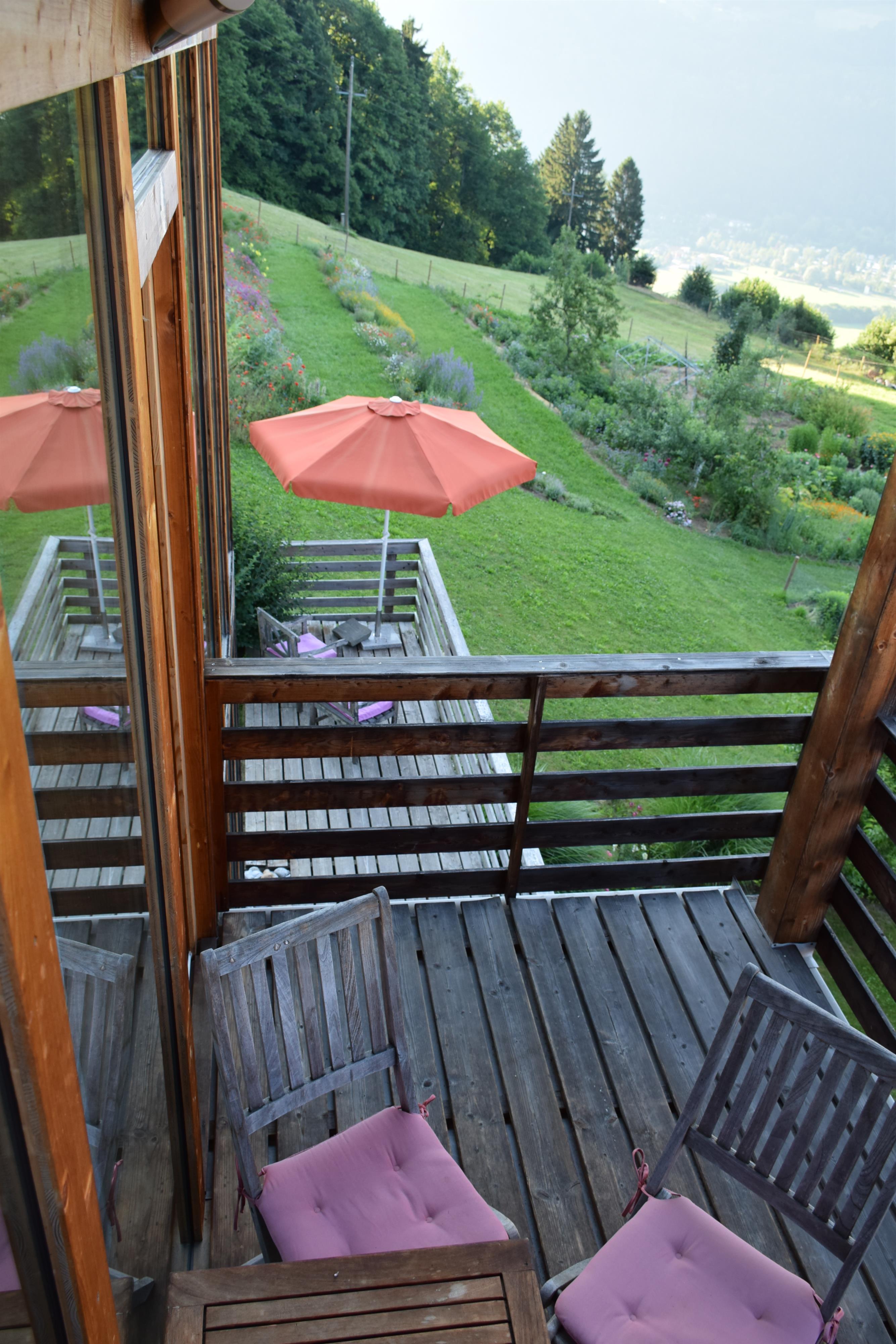 Davor können Sie vom Balkon das Panorama in einzigartiger Ruhe genießen. In den Liegestühlen hat man eine schöne Aussicht auf die umgebende Bergwelt und ins Tal nach Döbriach.