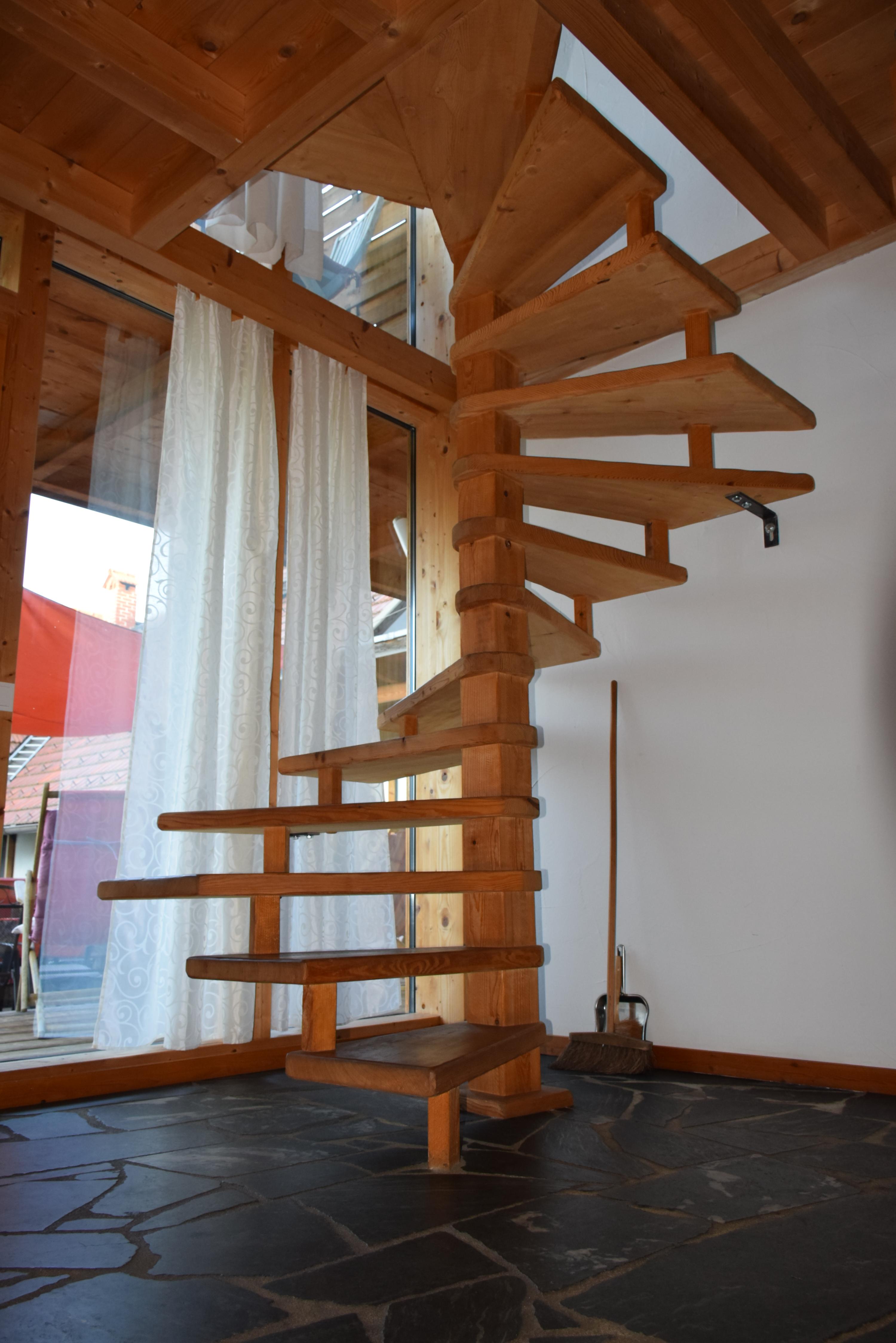 Über die rustikale Wendeltreppe gelangt man in das Obergeschoss mit zwei geräumigen Schlafzimmern.