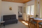 Unser Bungalow ist sehr komfortabel eingerichtet, besteht aus Vorraum, Wohn-Schlafraum, Schlafraum, Kochnische, Dusche/WC und Wintergarten. Geschirr, Kaffeemaschine, Bettwäsche und Handtücher sind vorhanden. GRATIS W-LAN