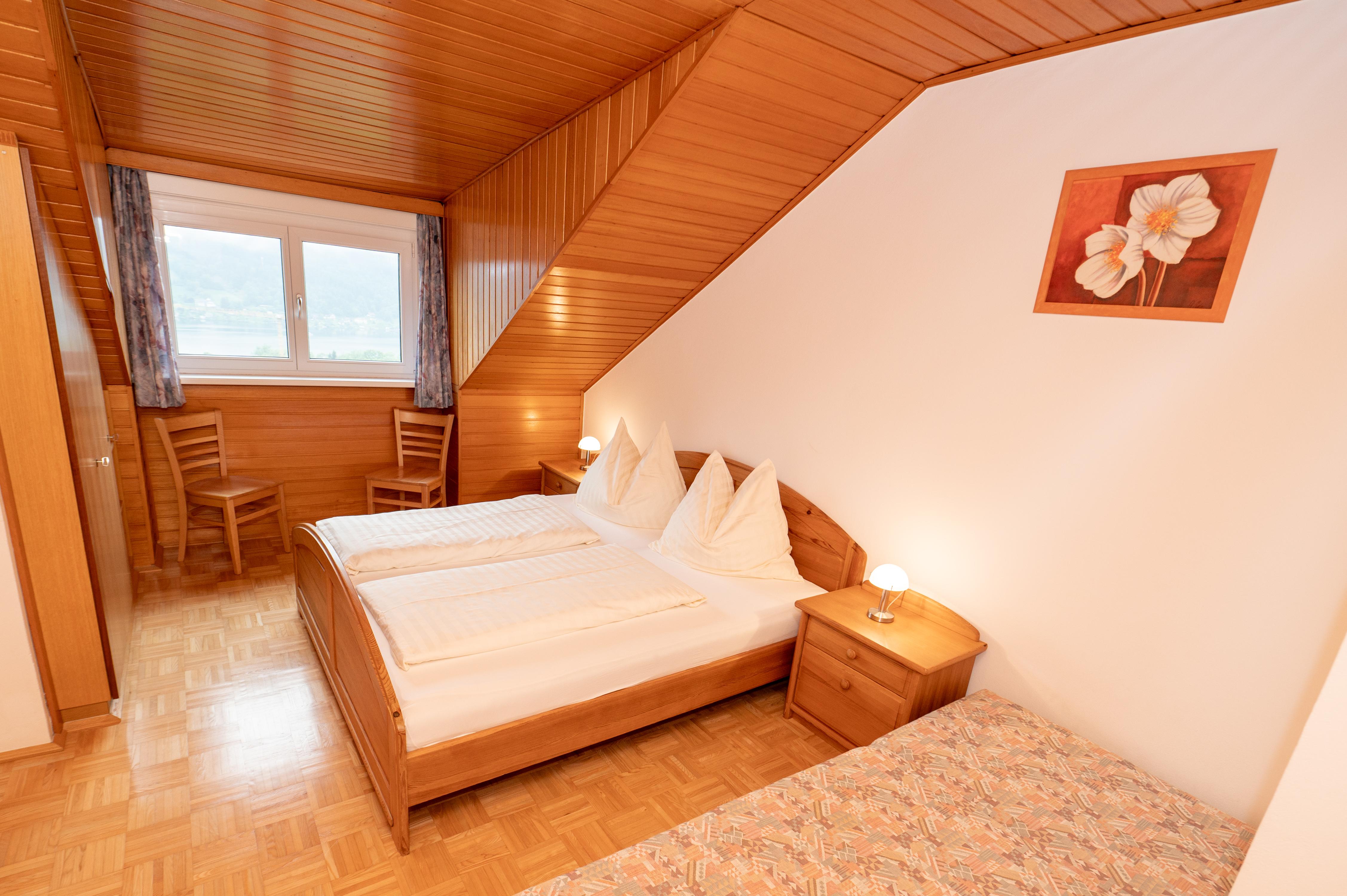 Bestehend aus zwei Doppelzimmern südseitig mit Seeblick, eines der Zimmer hat Ostbalkon, Bad/WC, eine Wohnküche (Geschirrspüler) mit Ostbalkon.