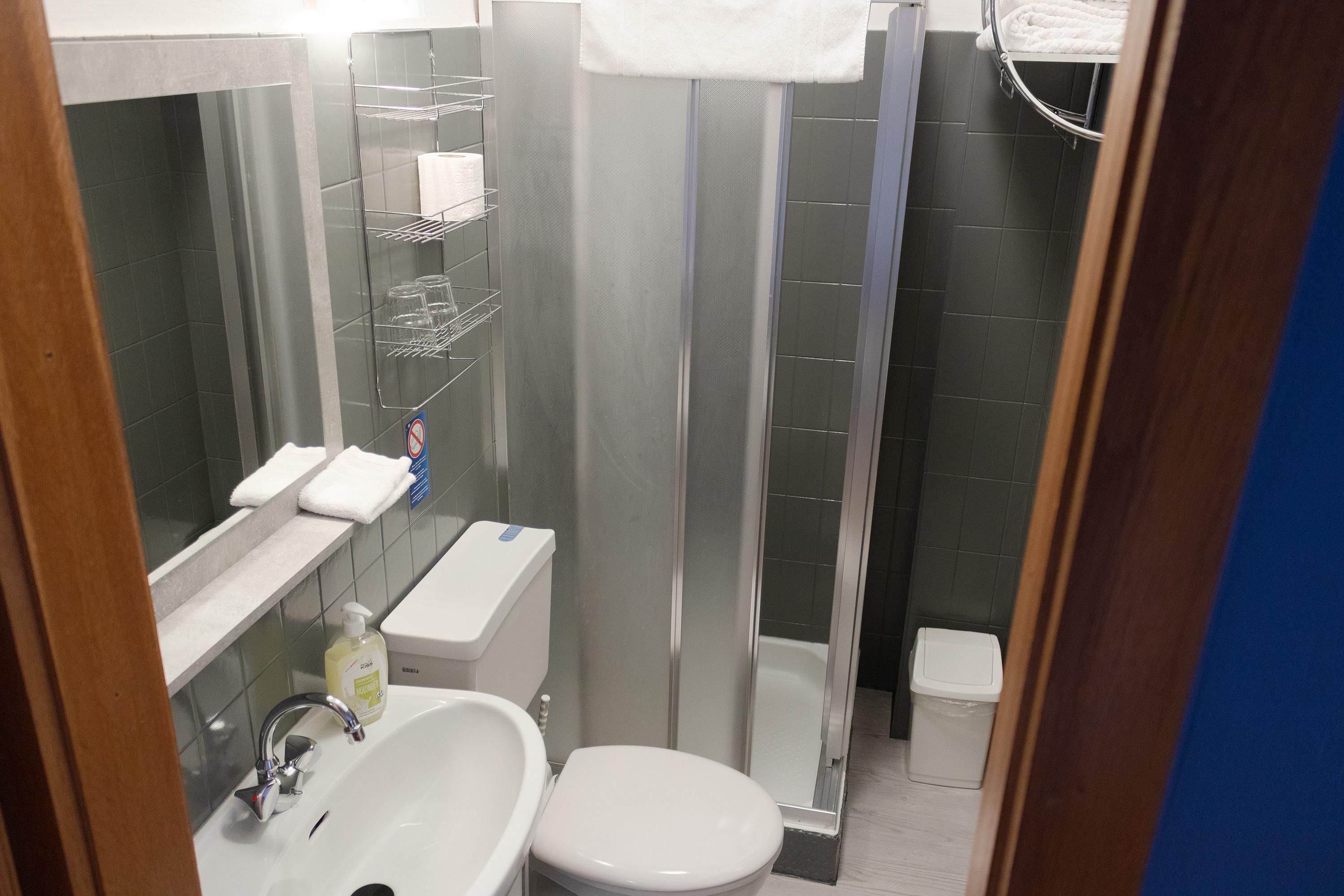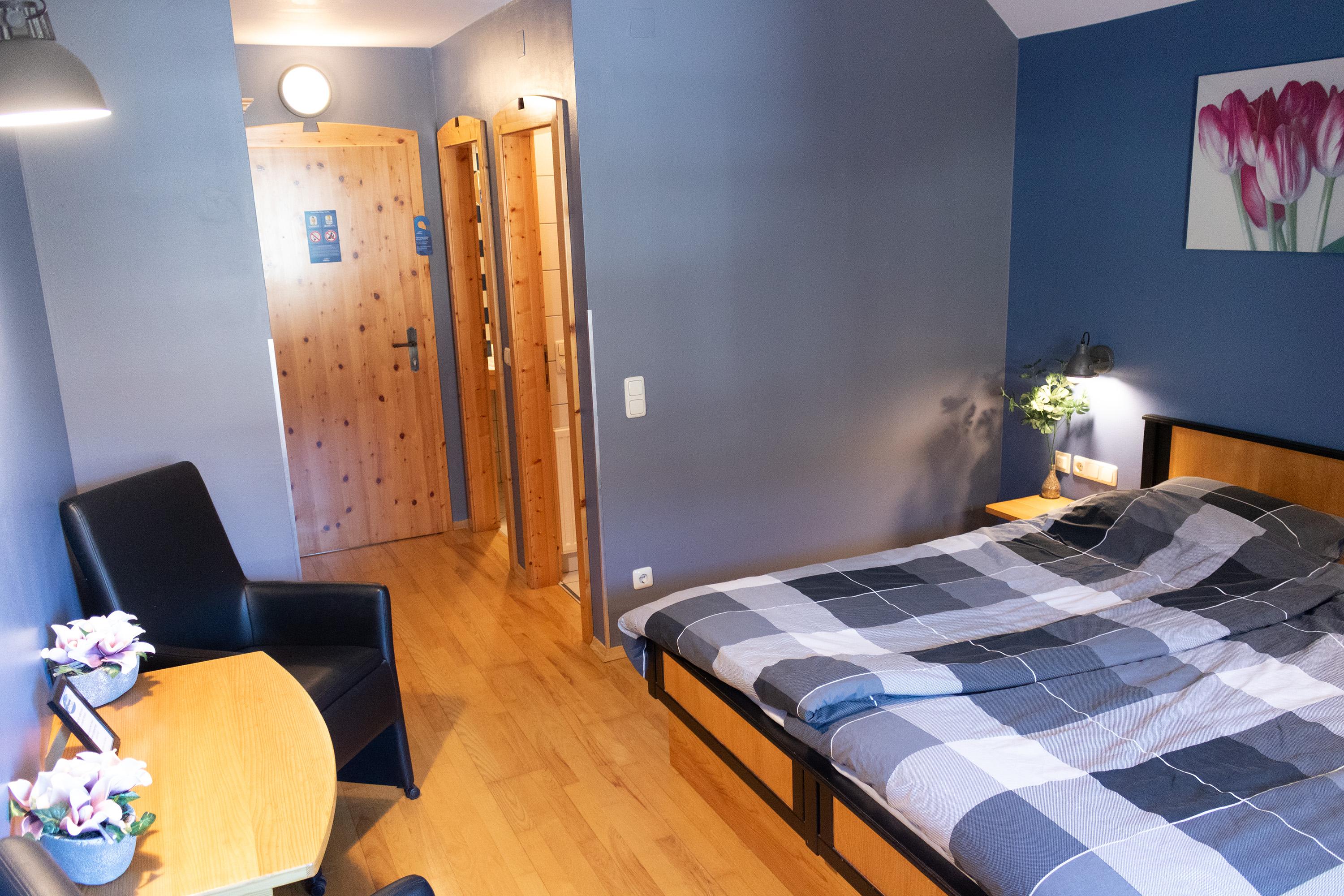 Ruhig gelegenes Doppelzimmer mit eigenem Bad und WC.