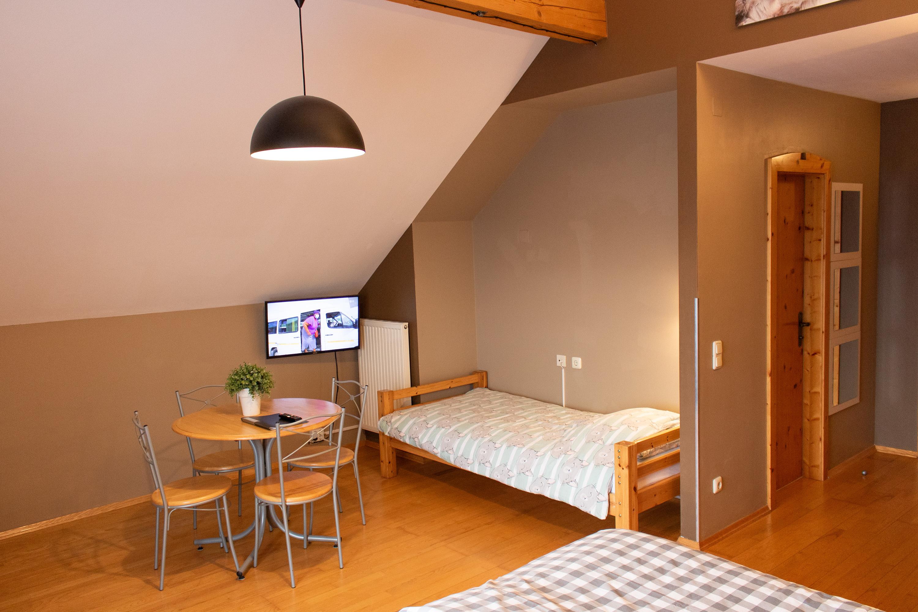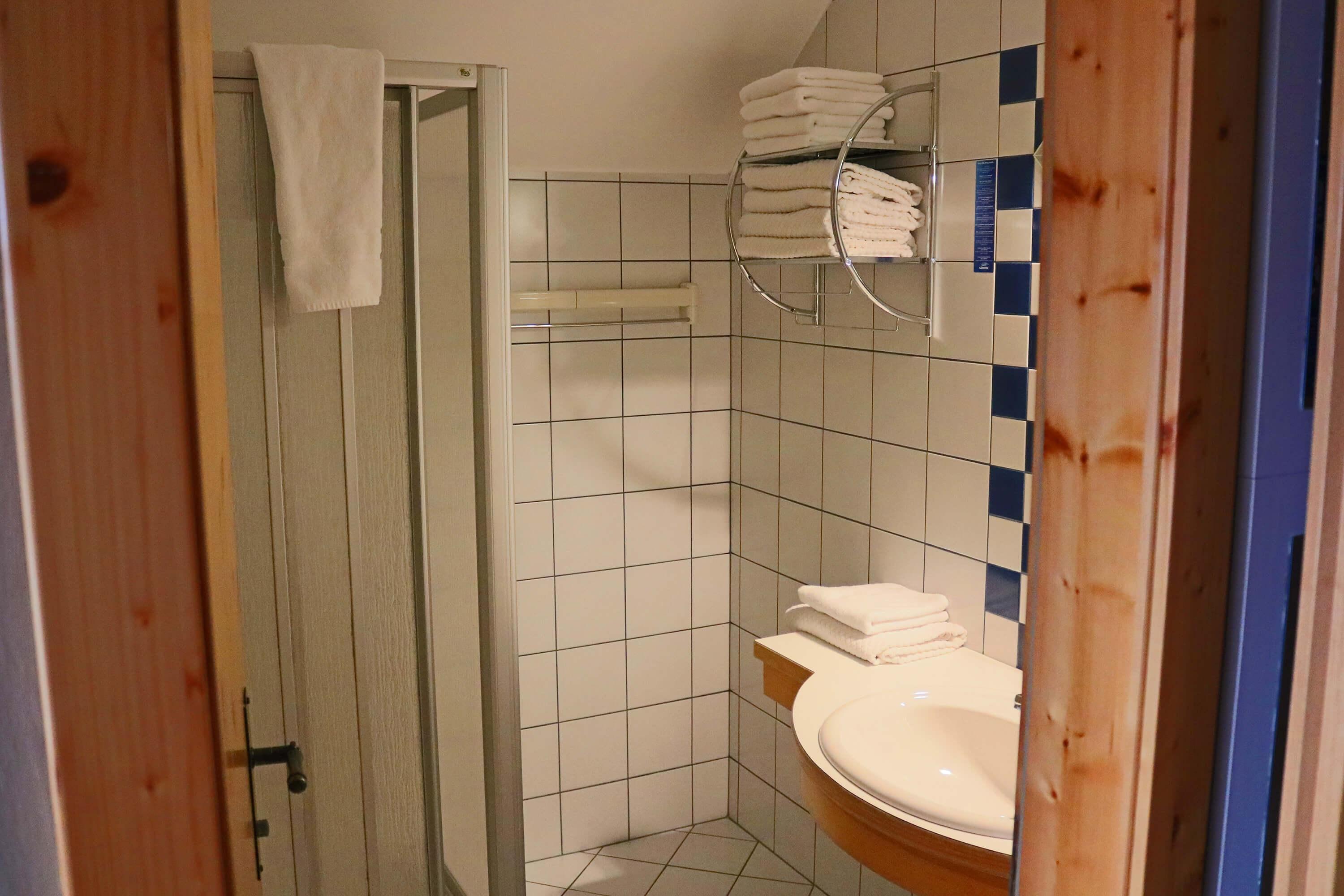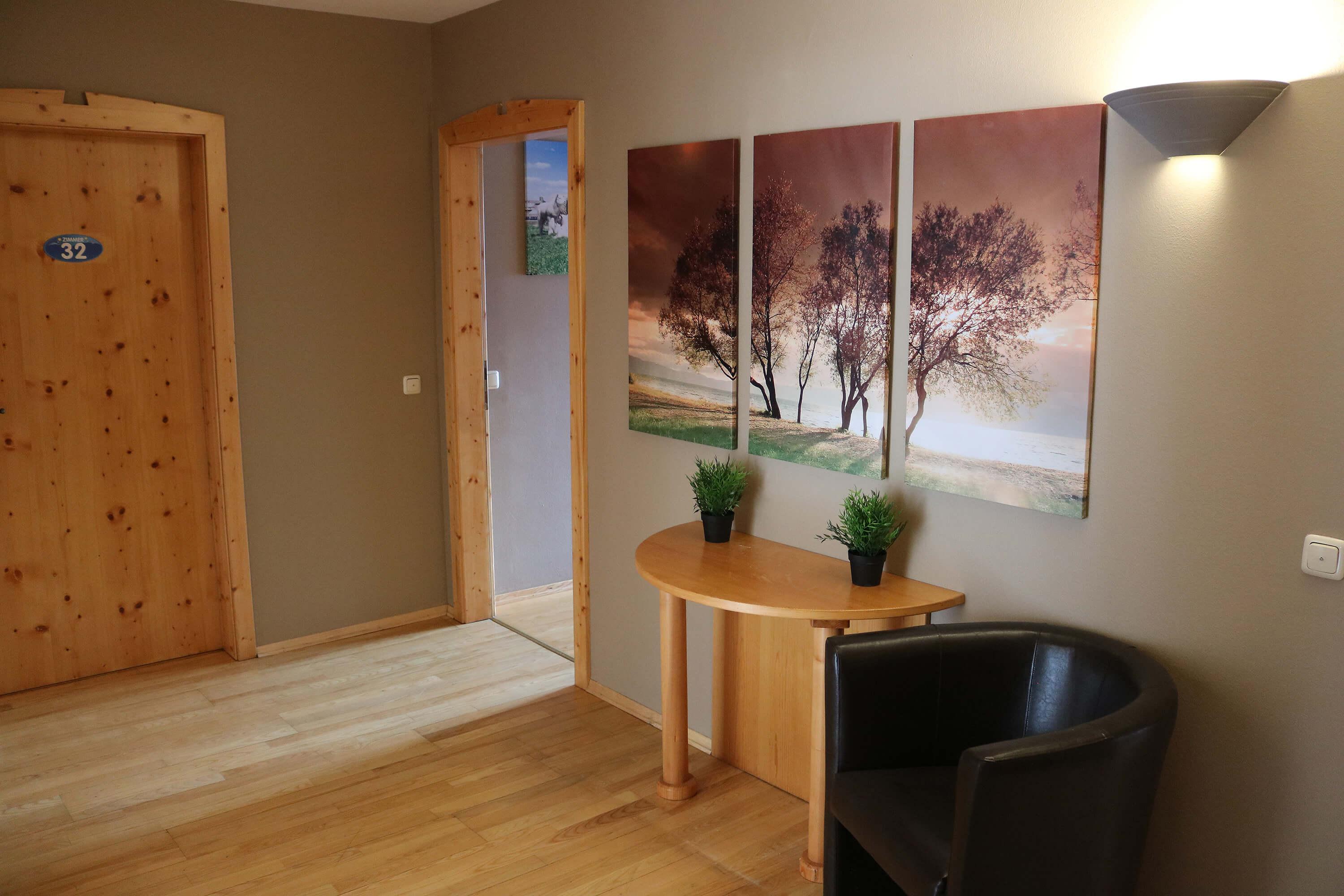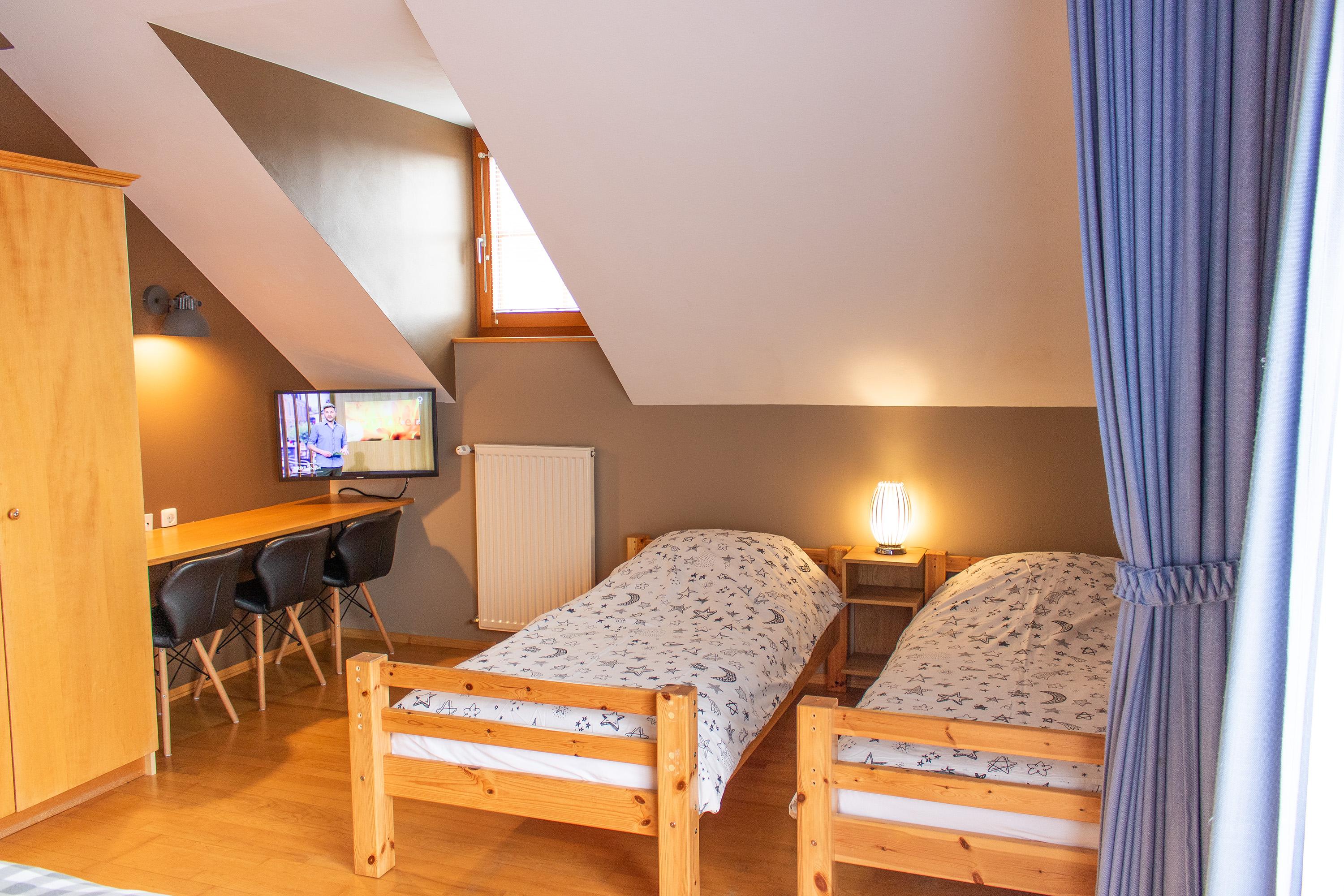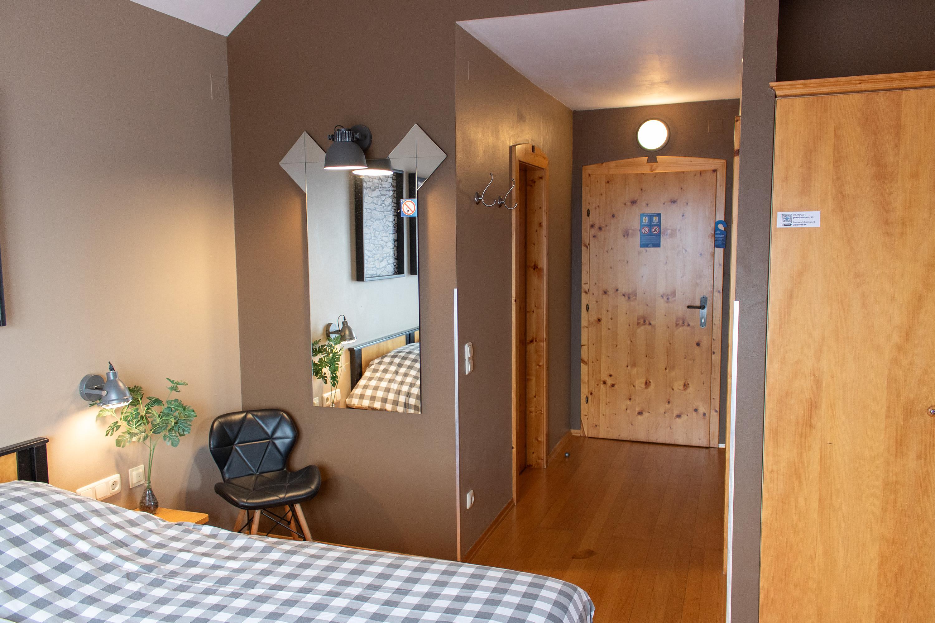 Geräumiges Familienzimmer, geeignet für 4 Personen, bestehend aus: einem Doppelbett und zwei Einzelbetten (90x200). Mit eigenem Bad und separater Toilette und Balkon mit schöner Aussicht auf die Burg Sommeregg und das Goldeckgebirge.