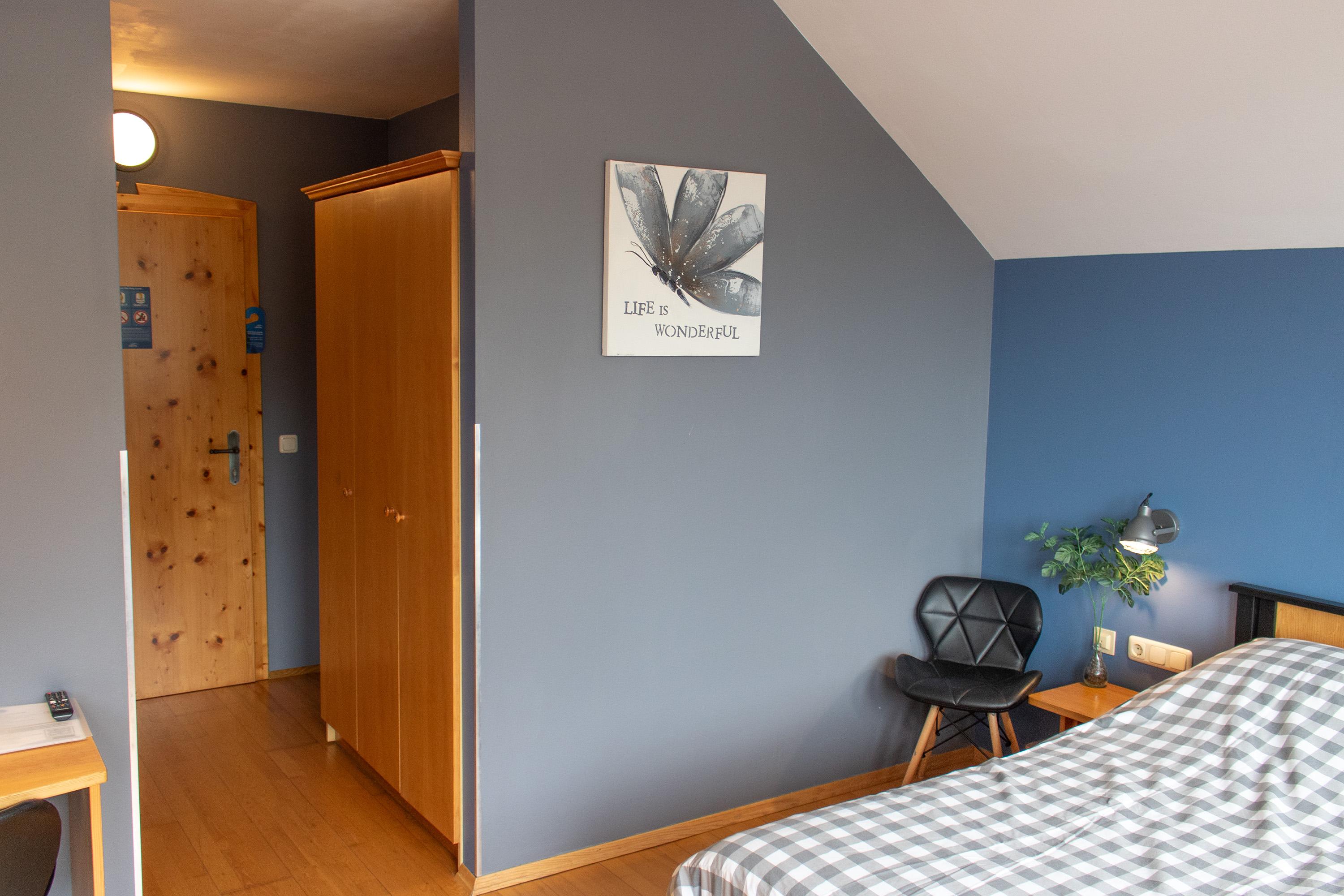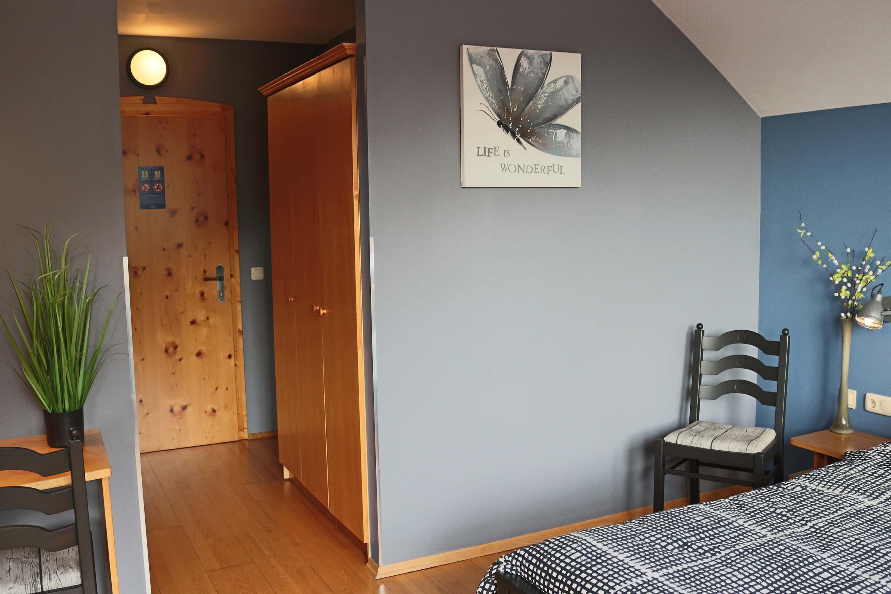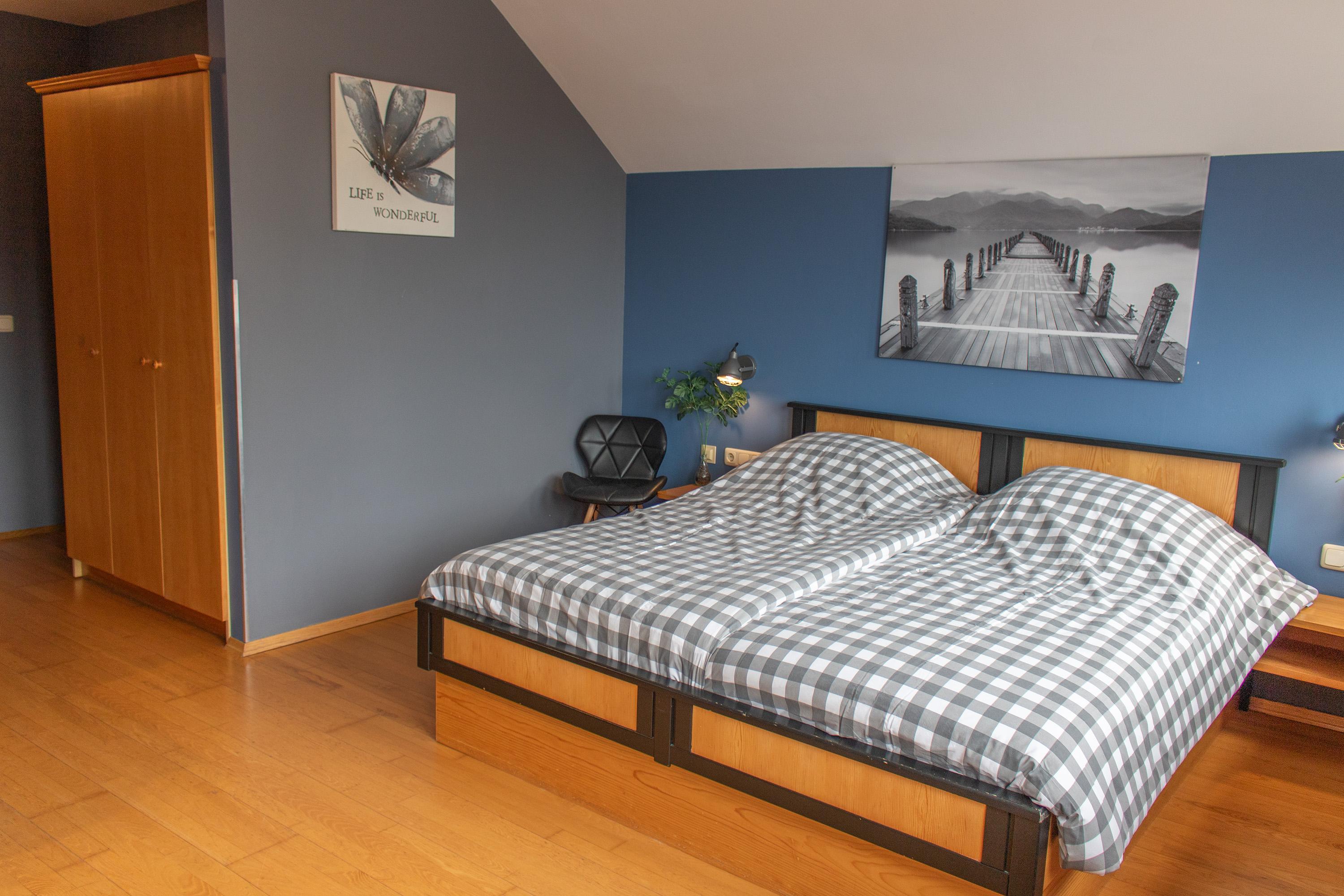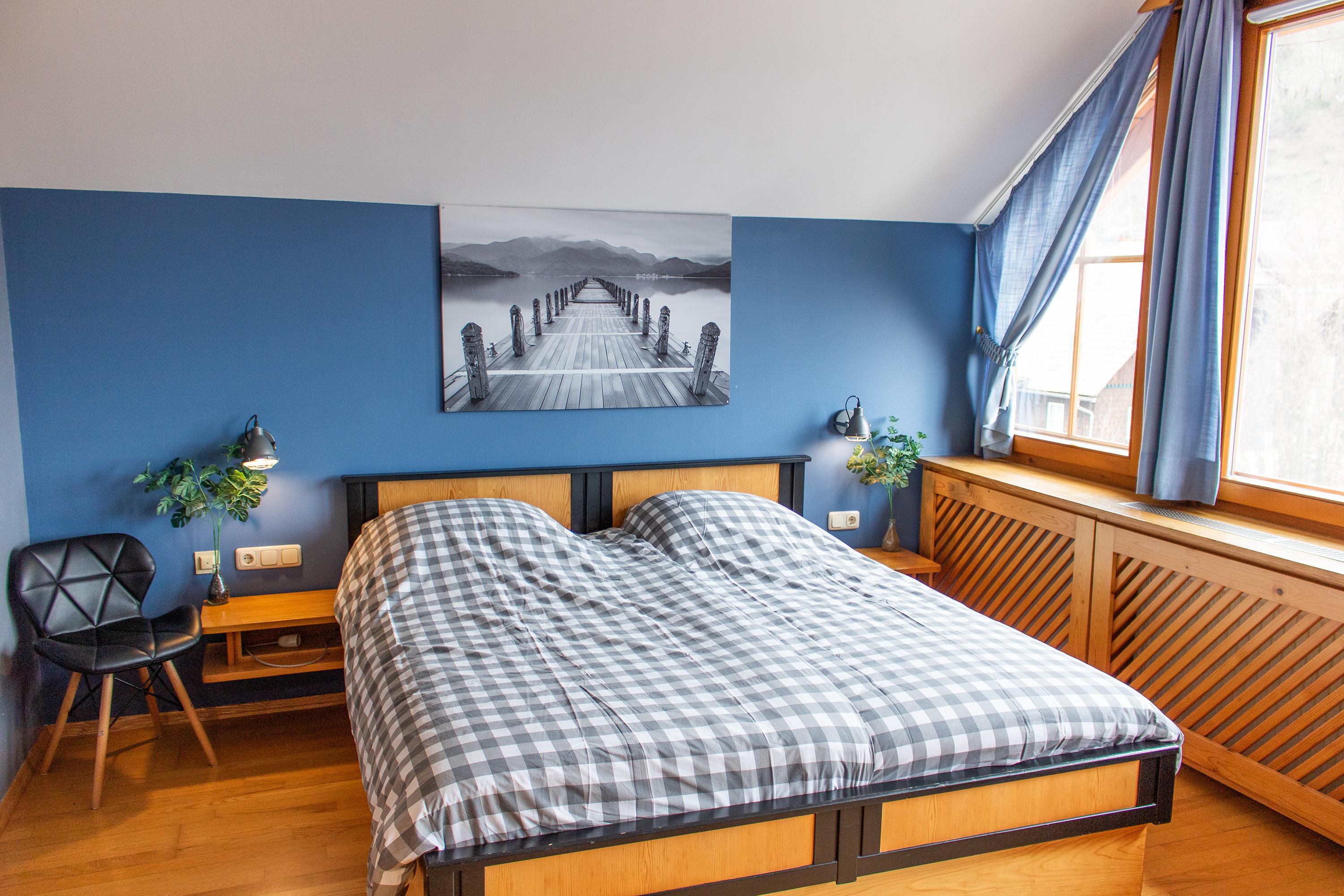 Geräumiges Familienzimmer, geeignet für 3 Personen, mit einem Doppelbett und einem Einzelbett (90x200), mit herrlichem Blick auf das Dobratsch- und Goldeckgebirge.