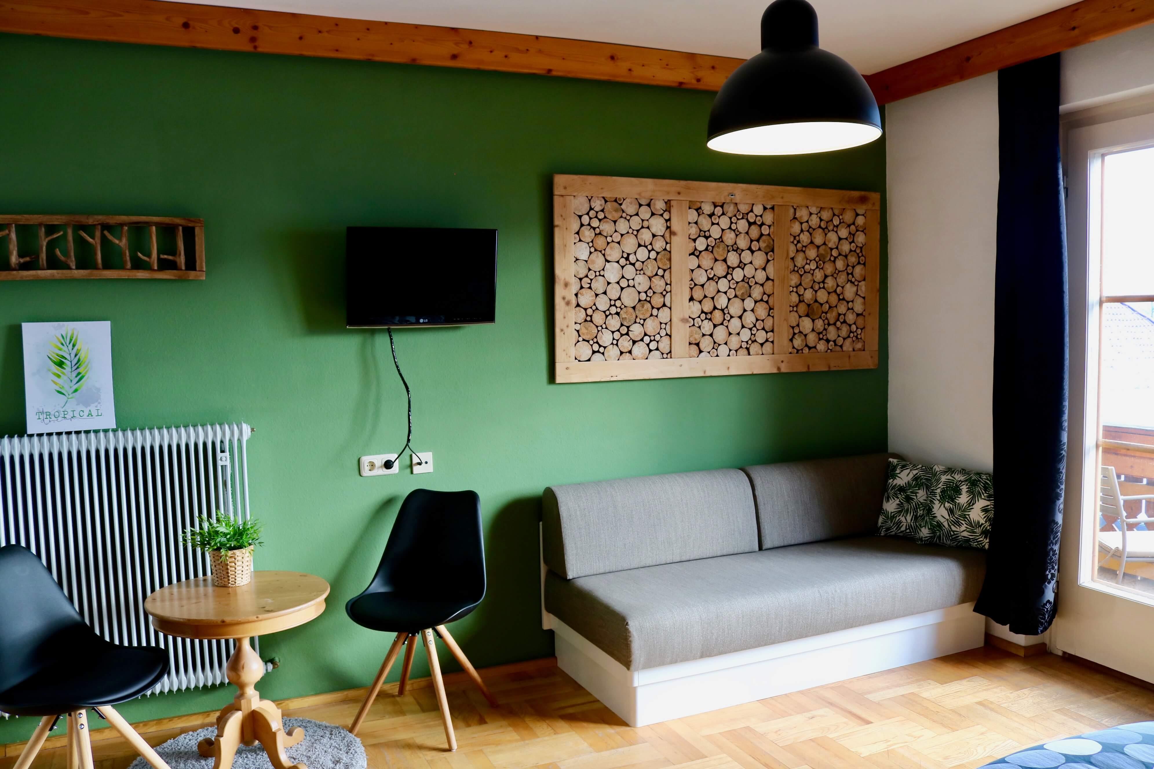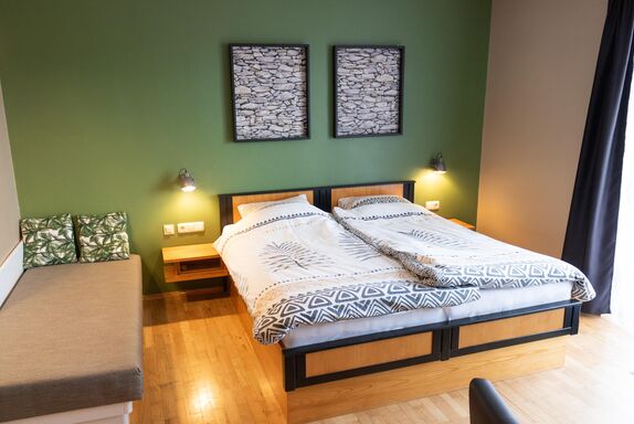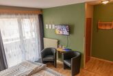 Dreibettzimmer mit Doppelbett und Einzelbett mit eigenem Badezimmer und großem sonnigen Balkon nach Osten oder Süden.