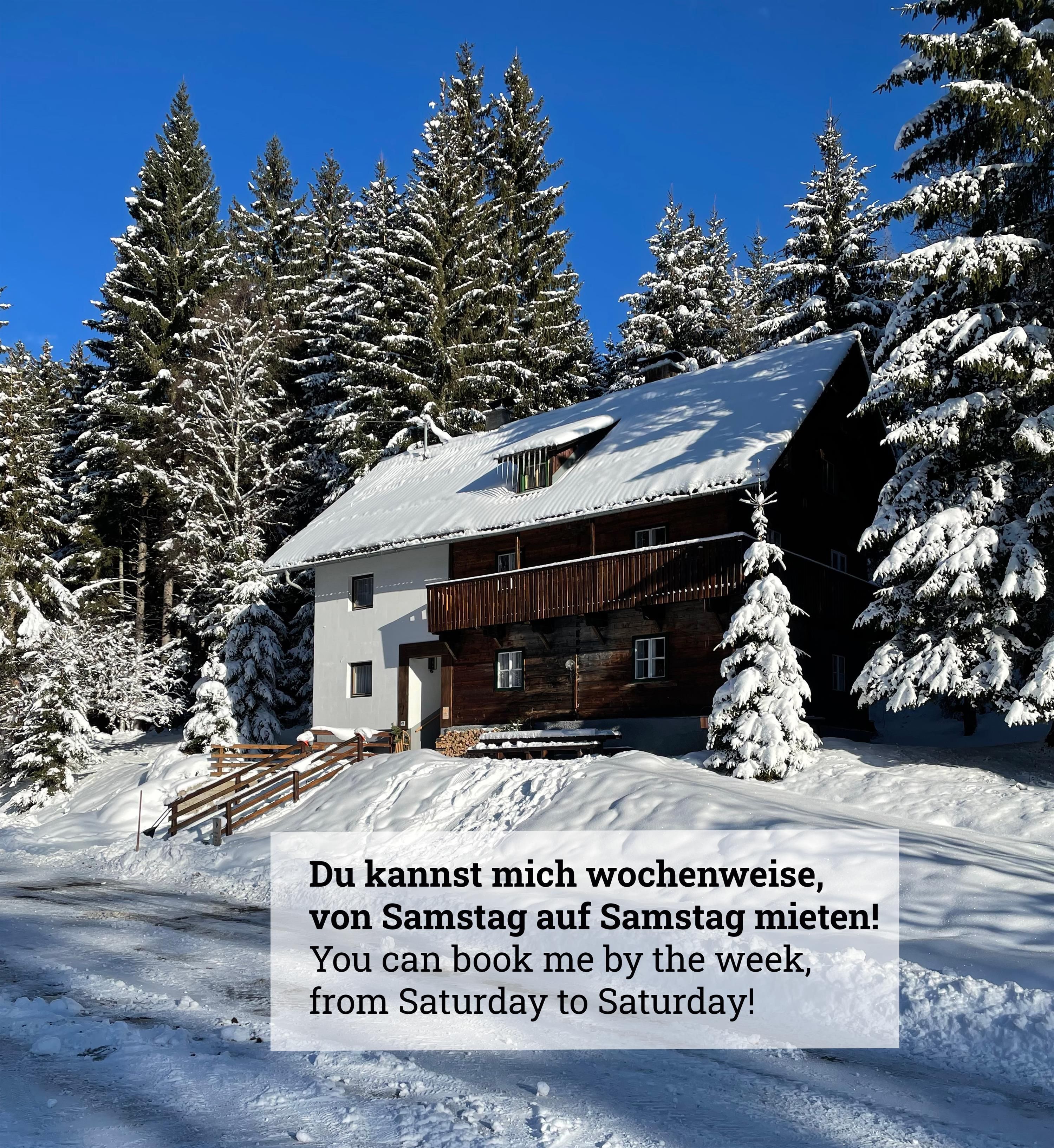Grüß euch, i bin's, ein altes Haus in ruhiger Alleinlage auf 1.250 Meter Seehöhe, umgeben von Wald und Natur. Hier habt ihr eure Ruhe, aber wenn ihr wollt, seid ihr mit dem Auto in wenigen Minuten oben bei den Sesselliften und Gondeln auf der Turracher Höhe, oder auf den Spazierwegen rund um den Turracher See.