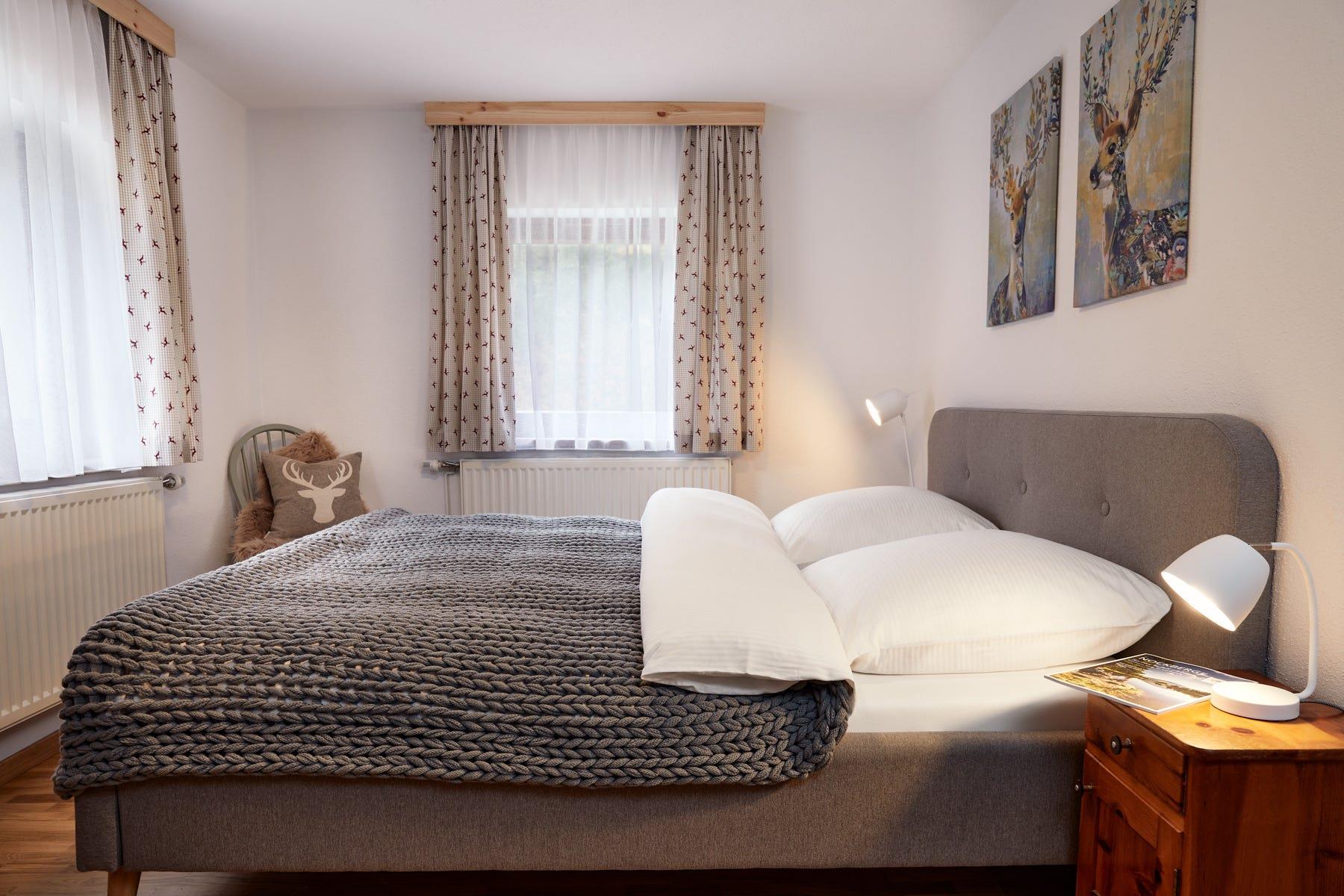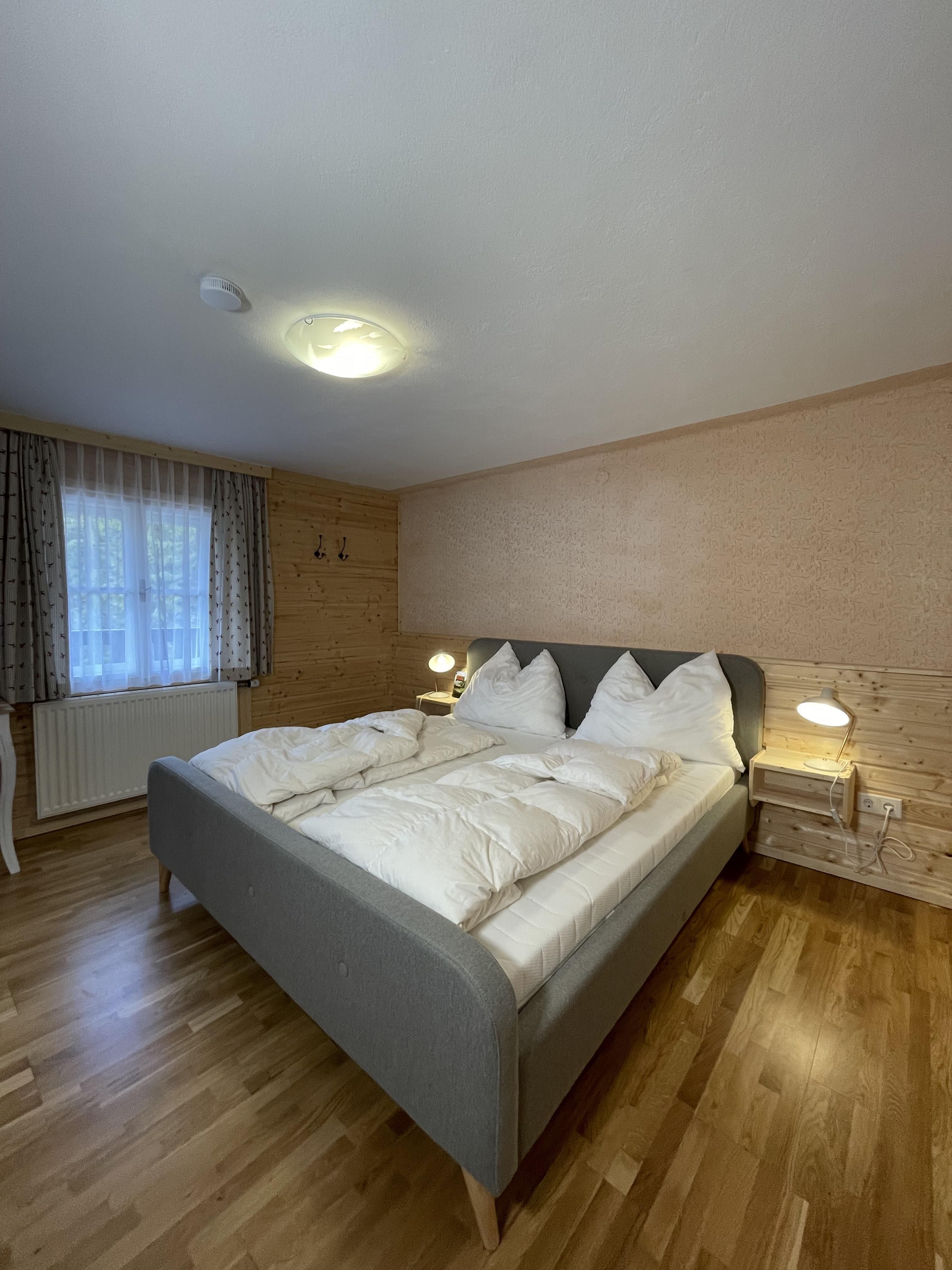 4 Schlafzimmer mit Doppelbett, 3 davon im Obergeschoss, 1 im Erdgeschoss.