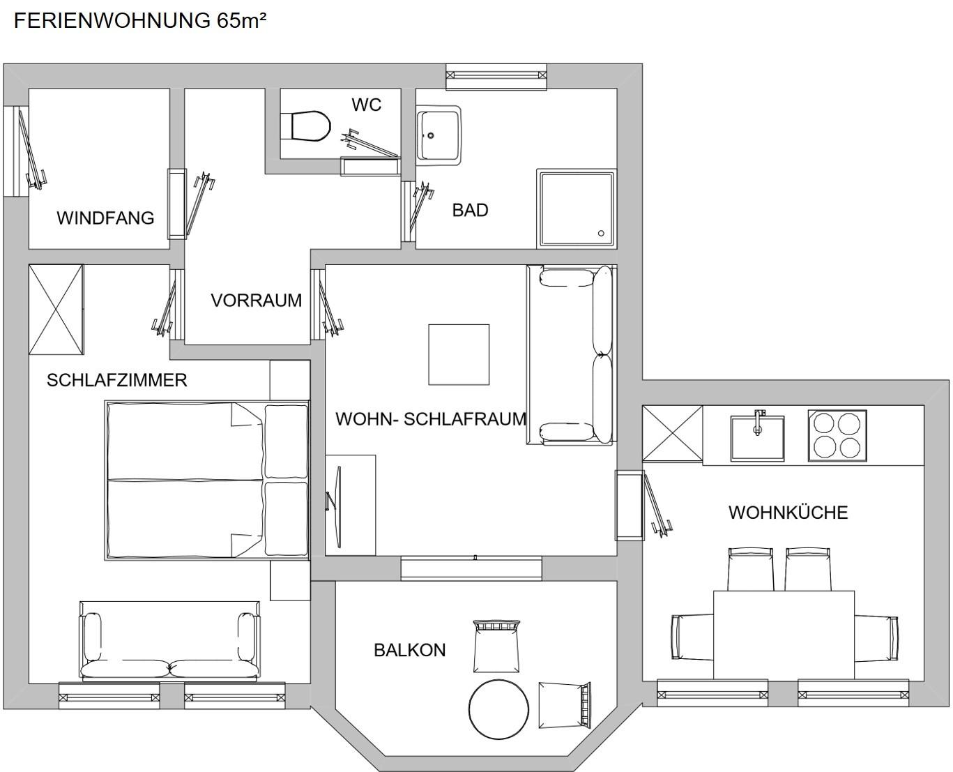 FERIENWOHNUNG**** 65 qm2 mit Balkon - 1 Schlafzimmer